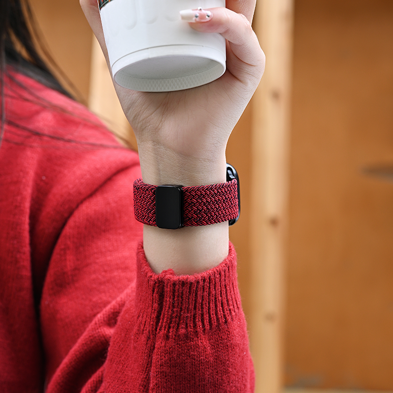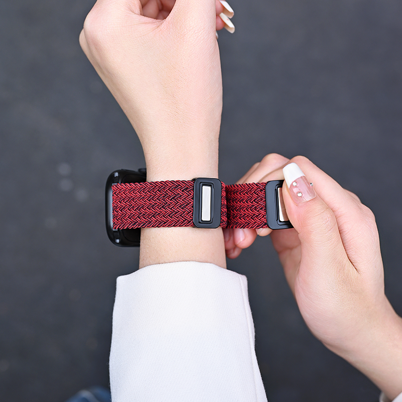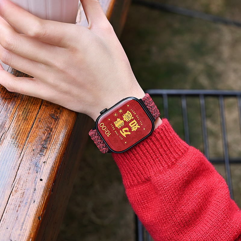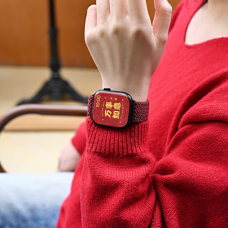📚 新年适用iwatchS11表带红色applewatch苹果S10版智能手表女款韩系S9尼龙编织s8质感S7磁吸SE3男series秋冬季