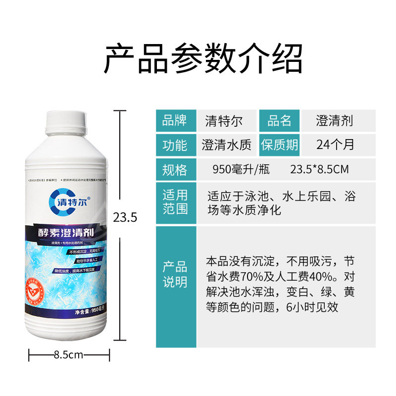 📚 清特尔游泳池浴池酵素澄清剂婴幼儿池絮凝沉淀净化泳池水处理药剂