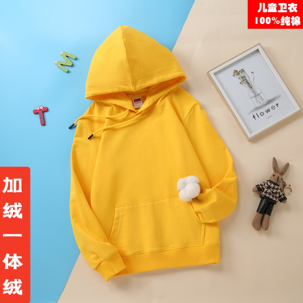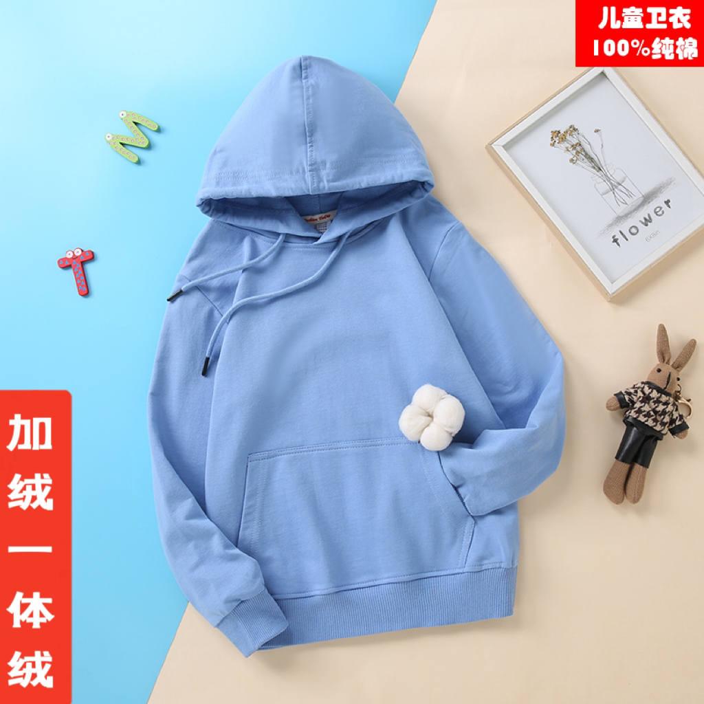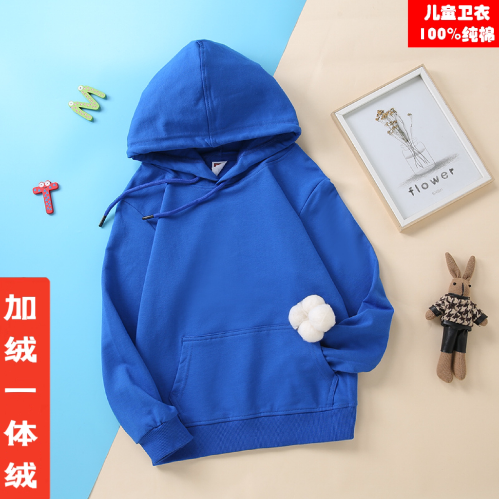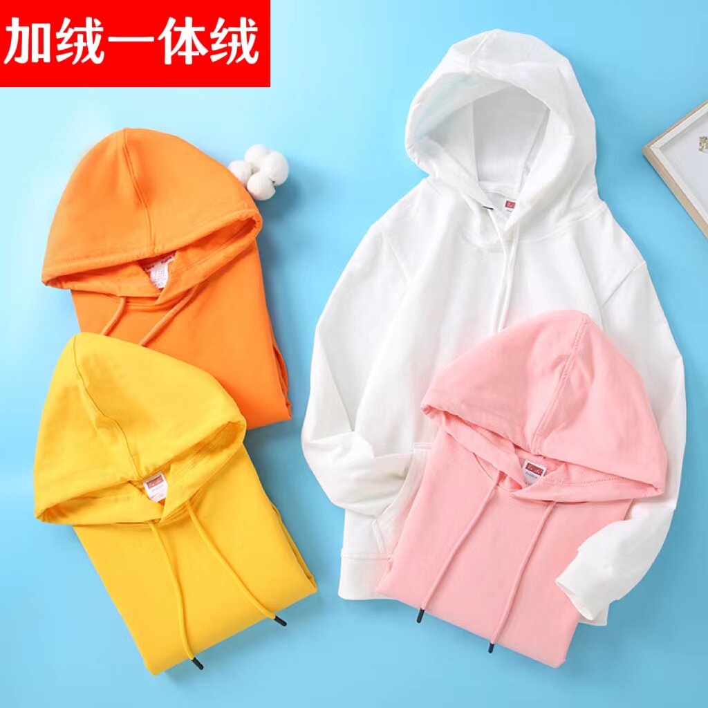 📚 秋冬款儿童彩色纯棉加绒连帽卫衣糖果色男童女童冬季加厚上衣班服