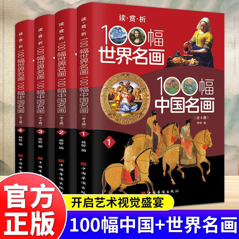 📚 全4册100幅世界名画100幅中国名画彩图版梵高蒙娜丽莎的微笑 世界绘画史画集珍藏版媲美温迪嬷嬷讲述200幅中西方世界名画赏析画册