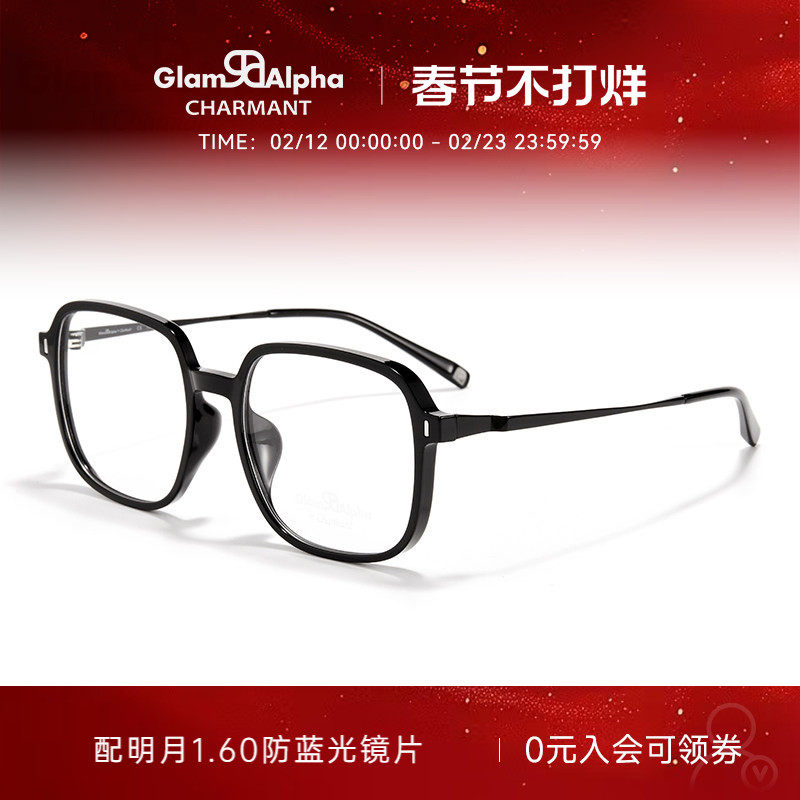 📚 CHARMANT夏蒙眼镜架素颜黑框眼镜男女轻盈大方框可配近视GA38167