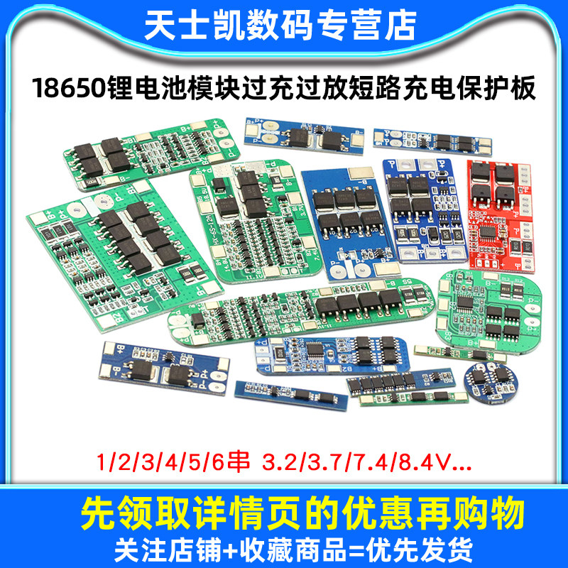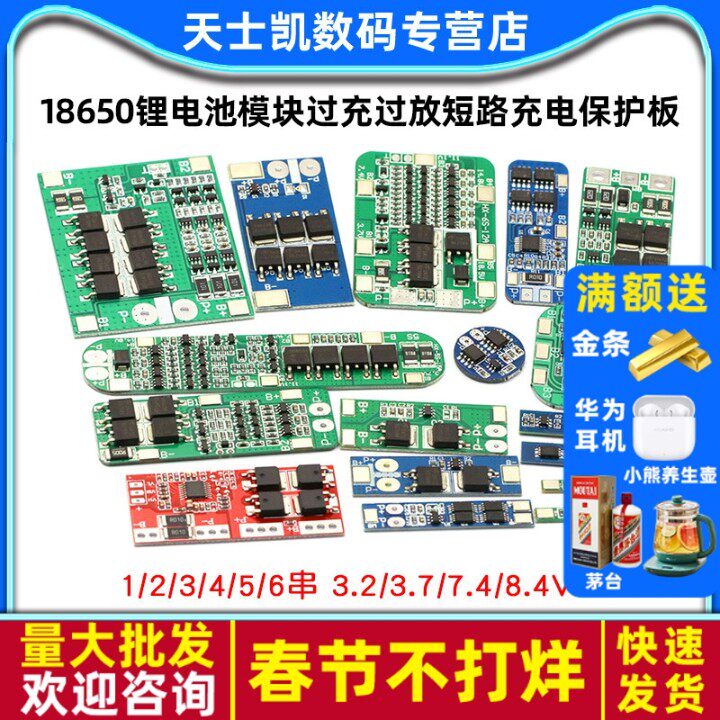 📚 18650锂电池模块过充过放短路宝伏1三串2/3/4串3.7/12V充电保护板