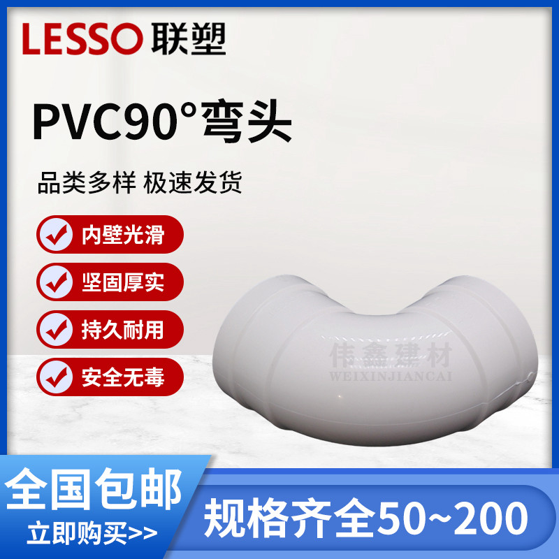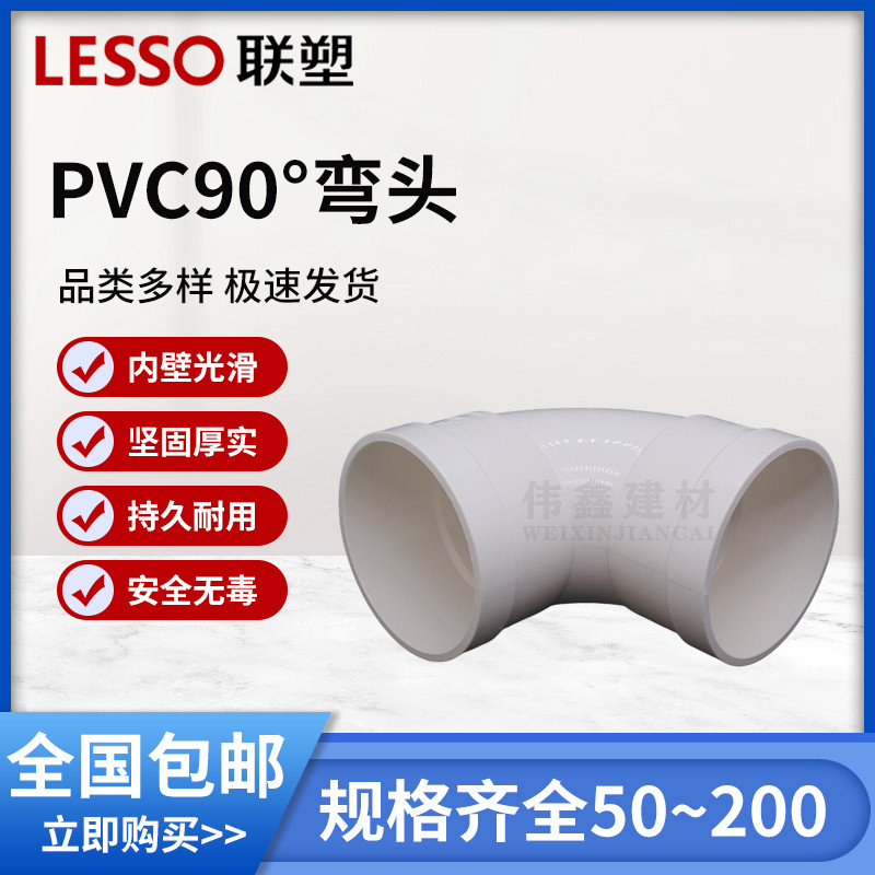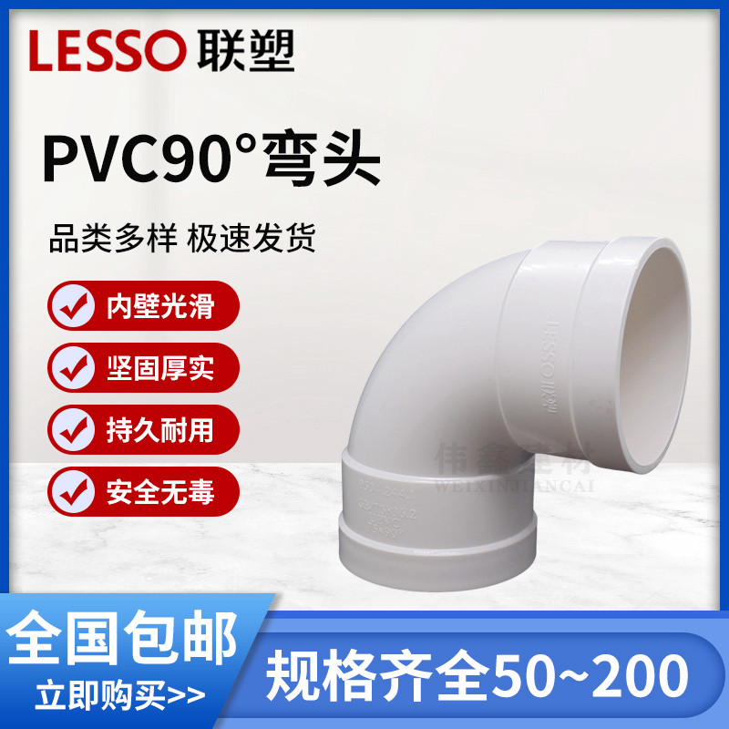 📚 联塑正品90度弯头PVC水管 配件接头PVC排水50 75 110 160 200弯头