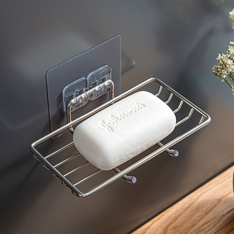 📚 304不锈钢免打孔沥水肥皂盒卫生间双层家用浴室大号壁挂式香皂架
