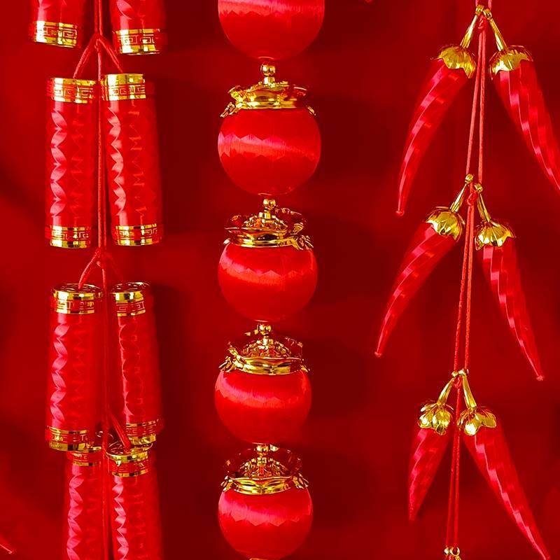 📚 新年仿真鞭炮串炮竹挂件挂饰假道具炮仗爆竹装饰灯笼小辣椒辣椒串
