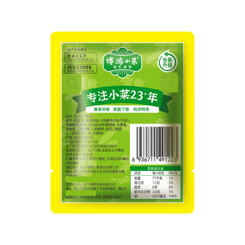 📚 博鸿小菜脆小瓜16g酱黄瓜腌黄瓜乳黄瓜杭州老底子味道下饭咸菜