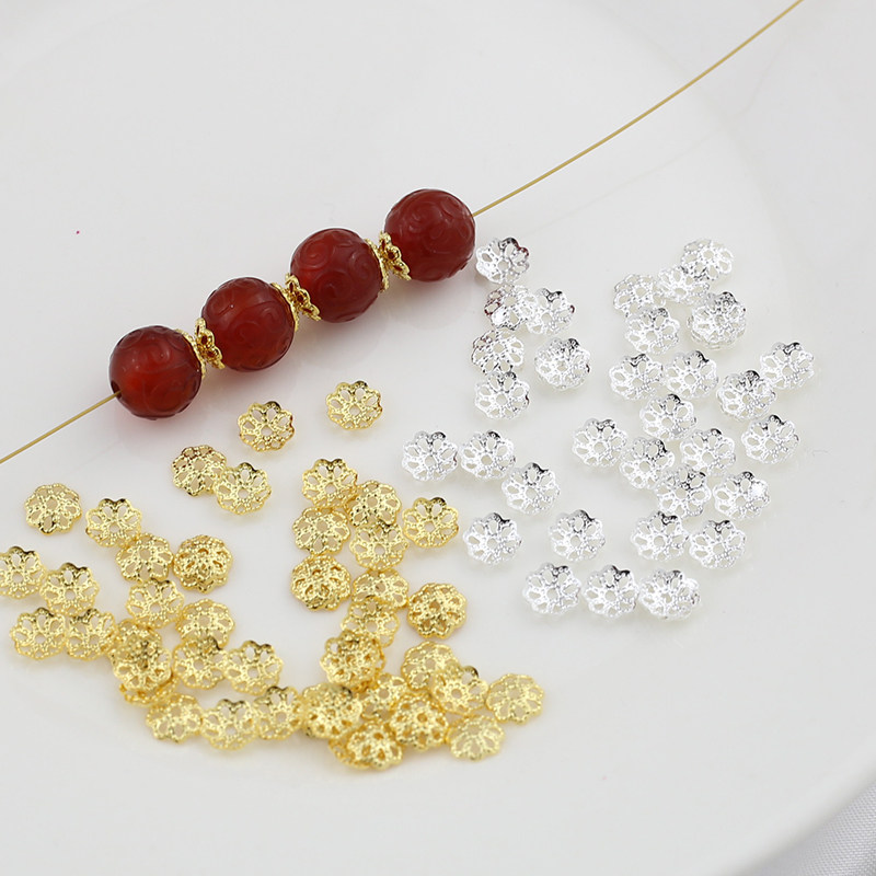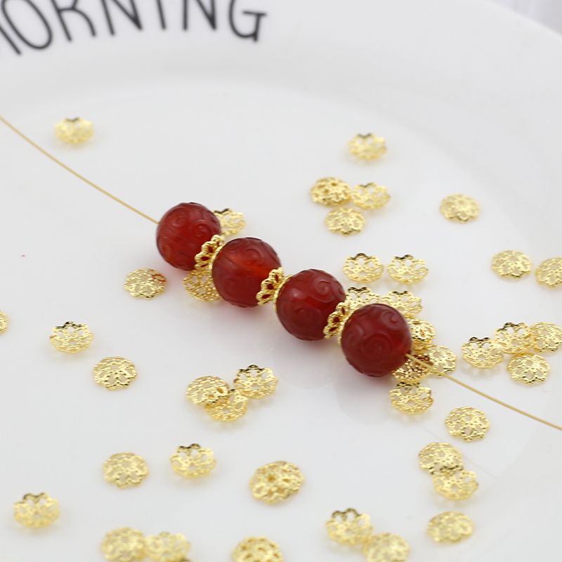 📚 18k包金镂空花托保色花帽珠托隔珠片DIY串首饰品手链隔片散珠配件