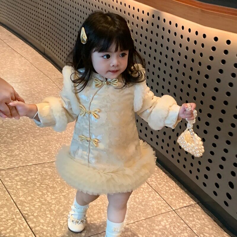 📚 女童冬装女孩衣服女宝宝连衣裙子1一岁半2周岁3拜年服4加绒5加厚6