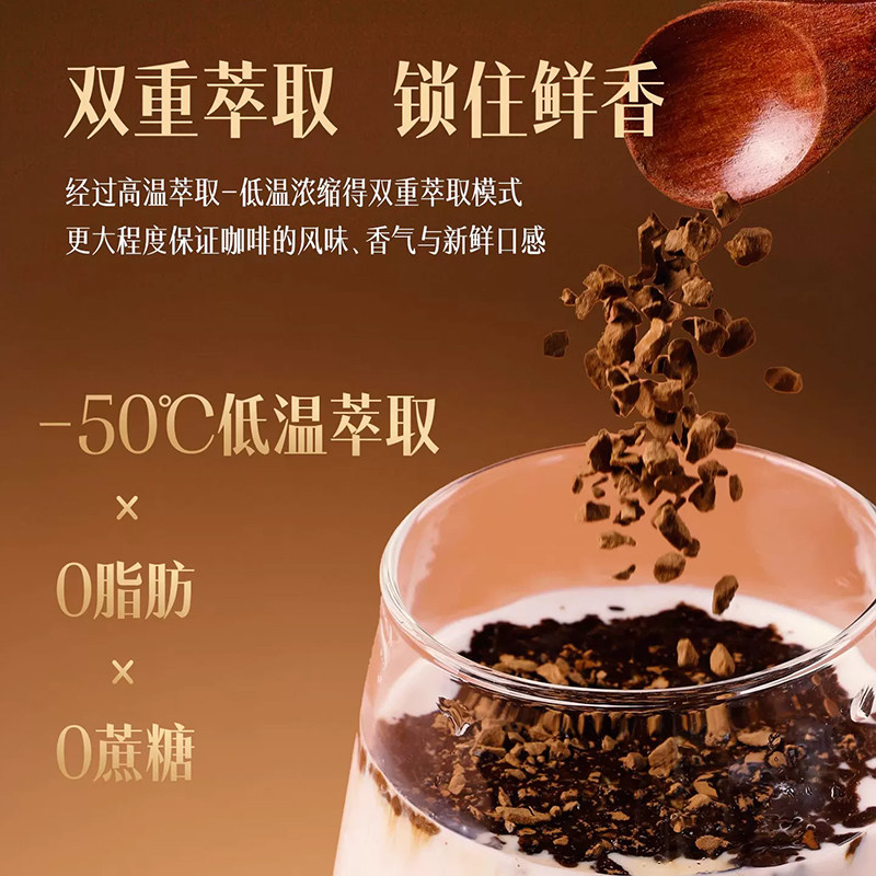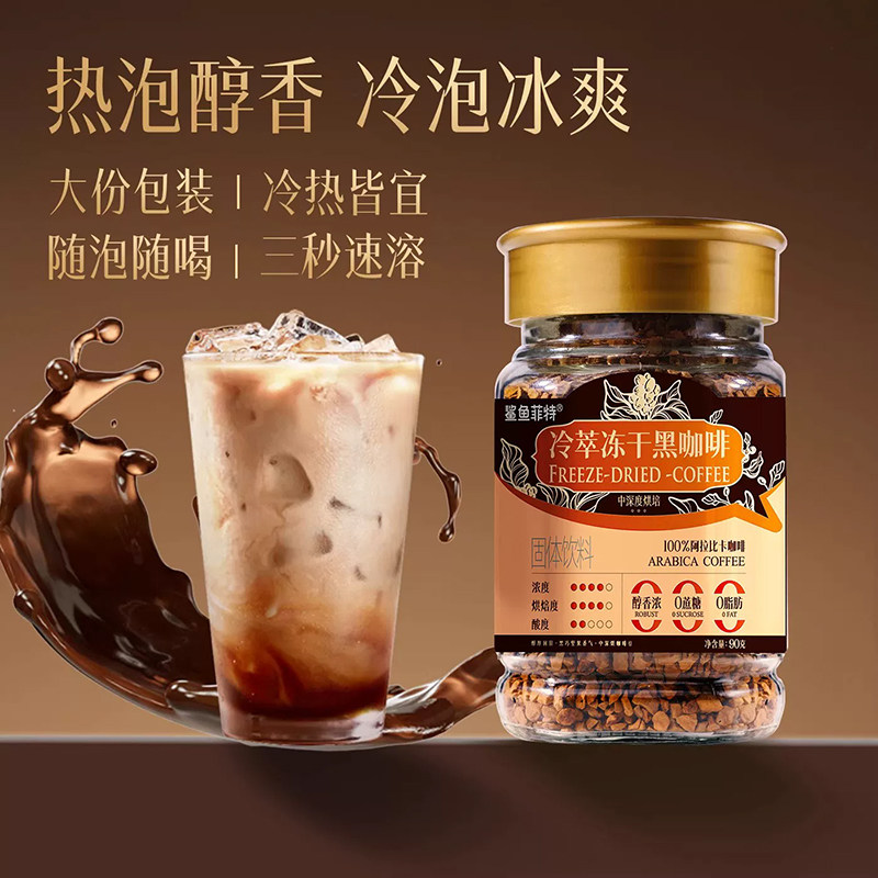 📚 鲨鱼菲特黑咖啡冻干冷萃速溶粉美式无糖拿铁云南小粒咖啡2罐