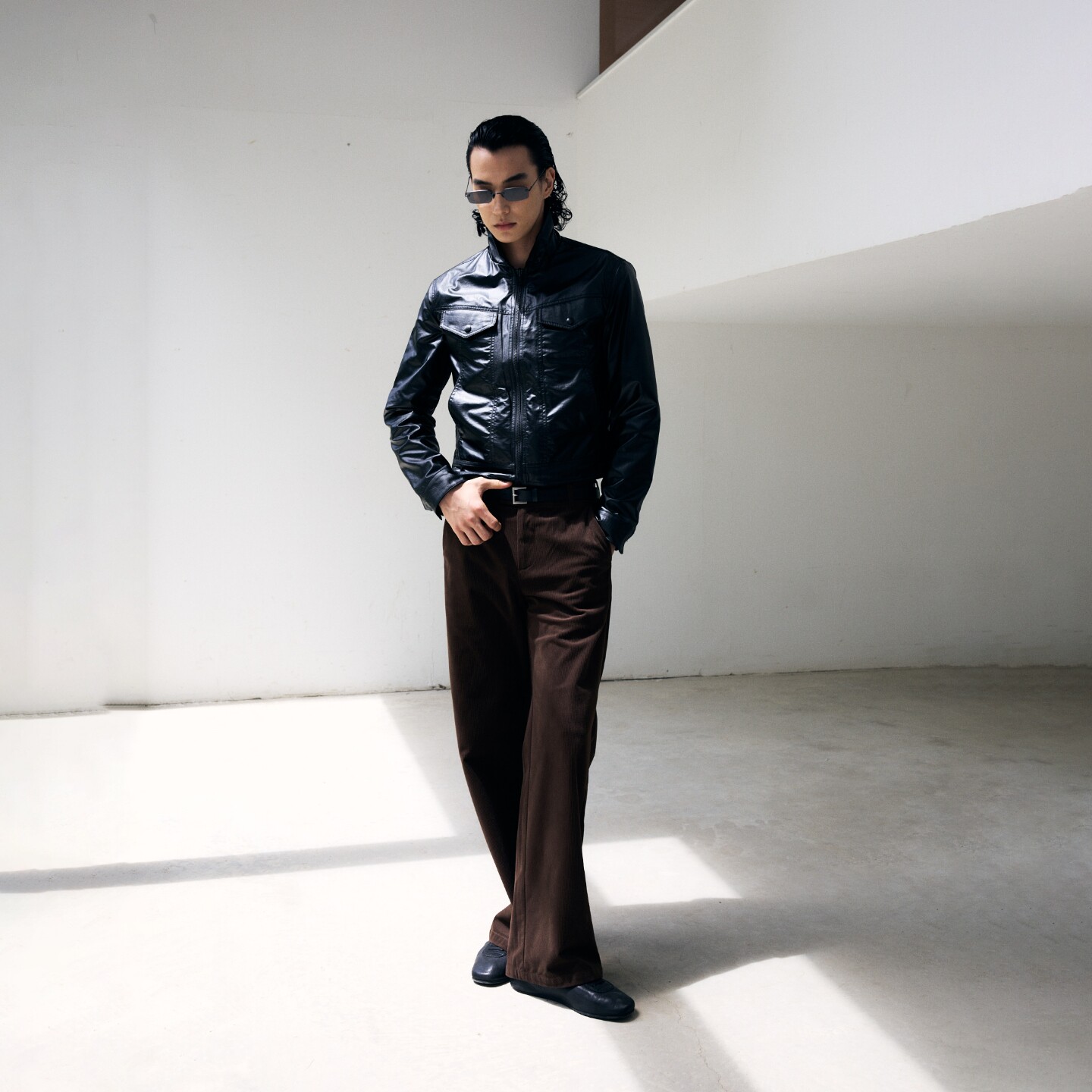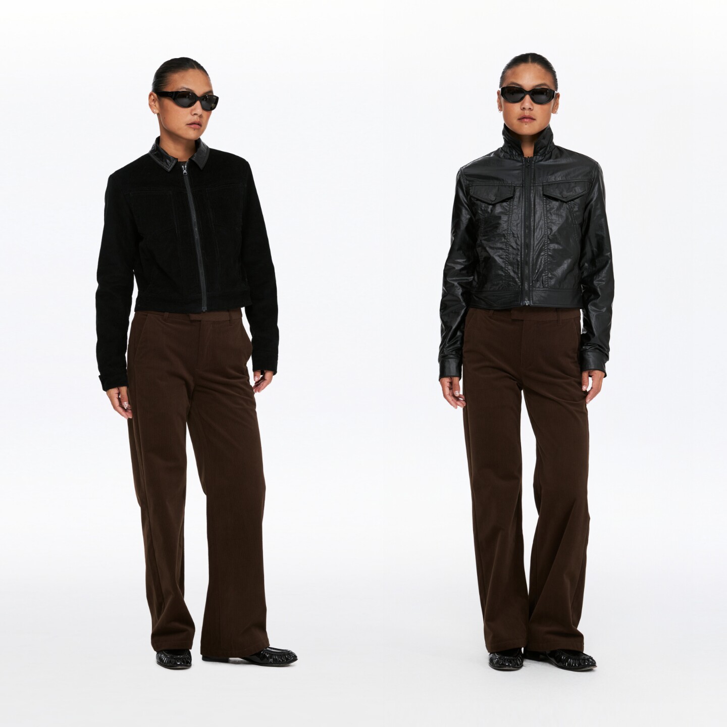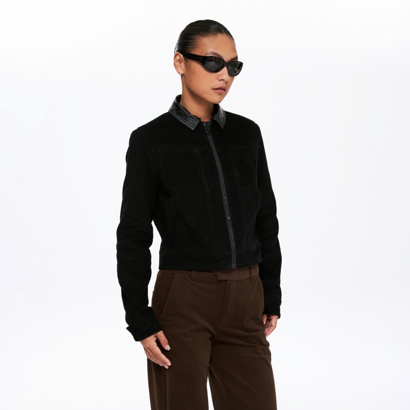 📚 oneup油蜡感双面穿灯芯绒外套女秋冬美式复古翻领短款黑色夹克