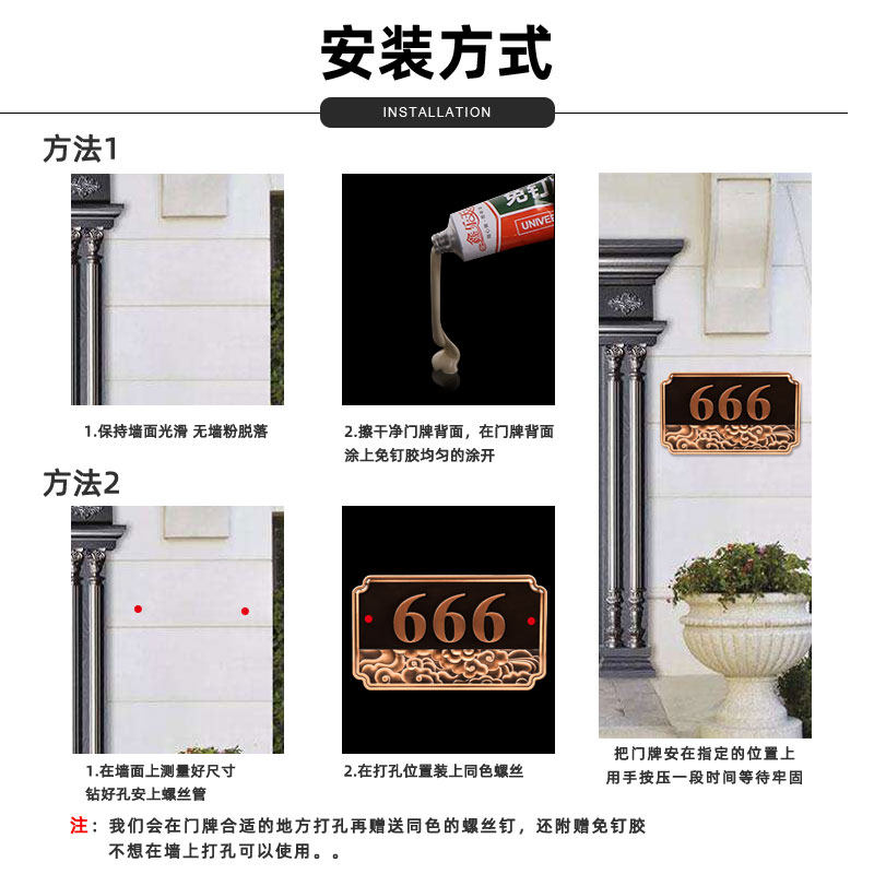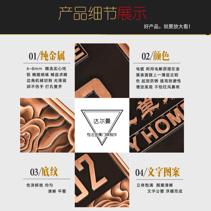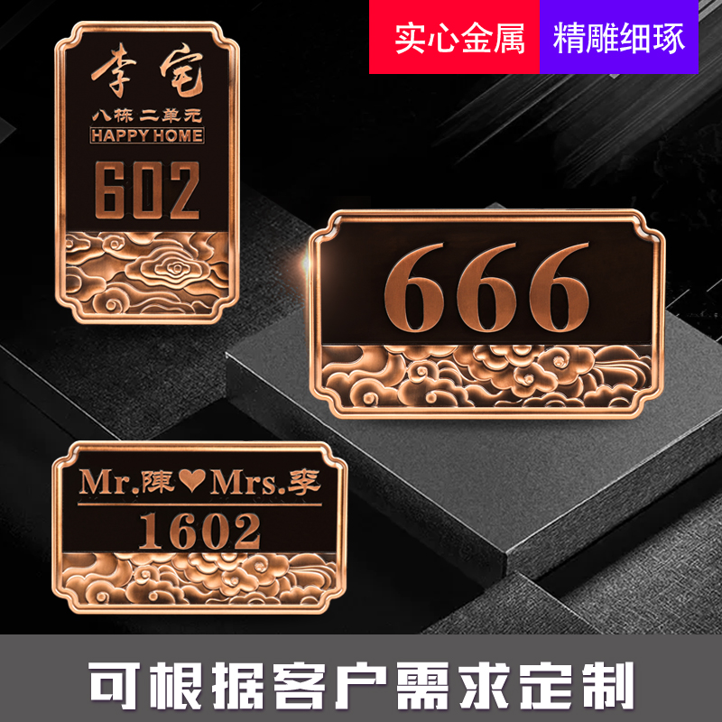 📚 金属高档别墅门牌家用住宅定制铝合金中欧式户外号码牌室外仿铜复古浮雕个性创意设计定做