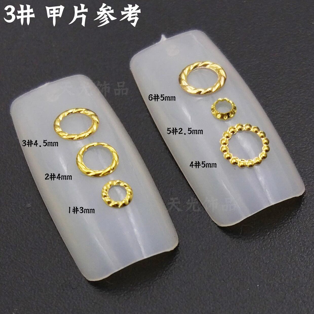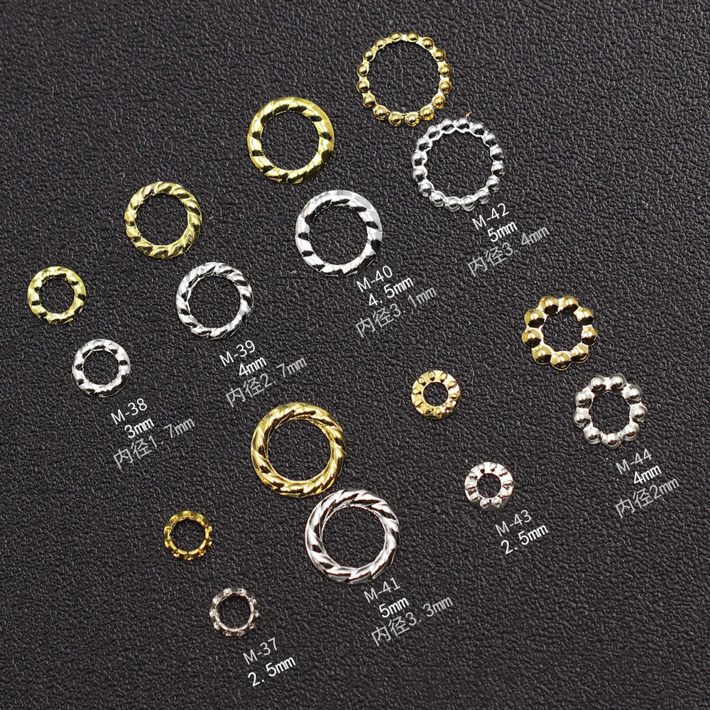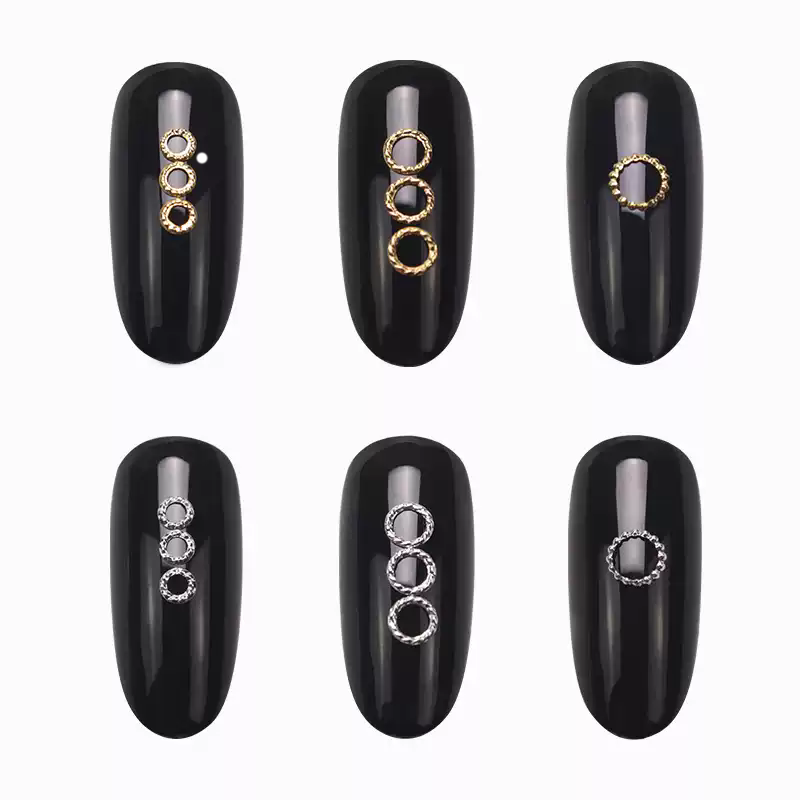 📚 美甲金属镂空圆形麻花圈金银日系百搭圆圈铆钉DIY指甲贴片装饰
