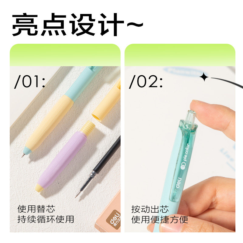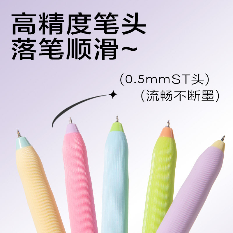 📚 得力刷题笔速干st头按动笔彩杆中性笔学生用备考水性笔0.5mm黑色透明考试笔颜值大容量油墨书写顺滑签字笔