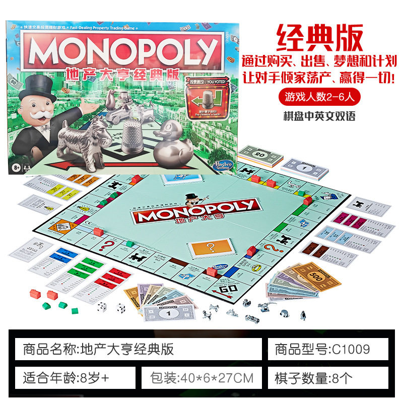 📚 Monopoly地产大亨经典版正版大富翁益智聚会桌游儿童益智玩具礼物
