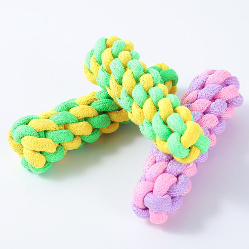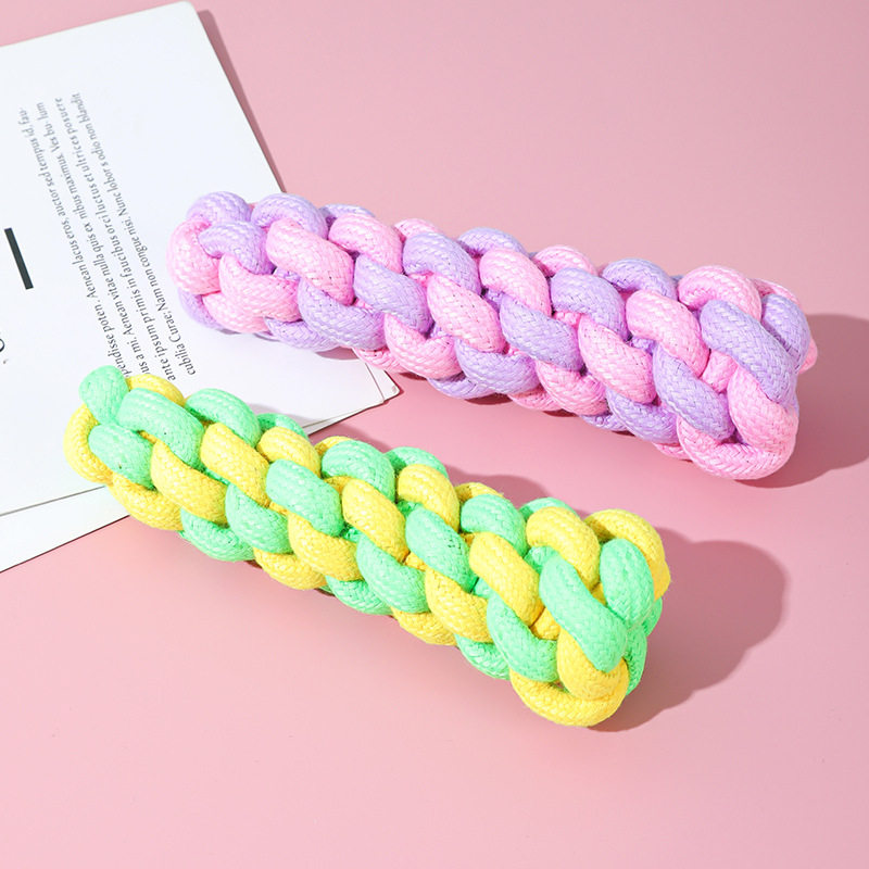 📚 宠物玩具棉绳双色编织麻花棒18CM糖果色 狗狗玉米棒耐咬磨牙