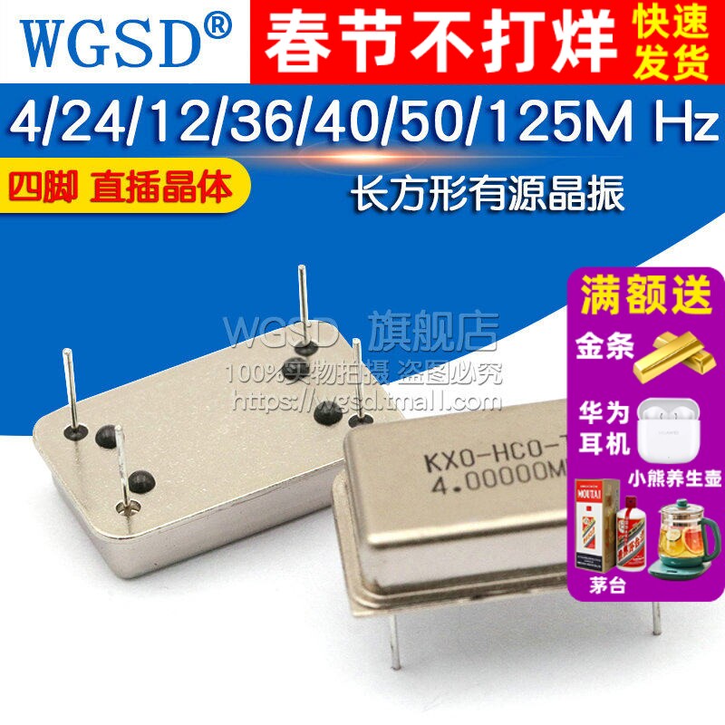 📚 长方形有源晶振4M 24M 12M 36M 40M 50M 125M Hz四脚钟振晶体直插