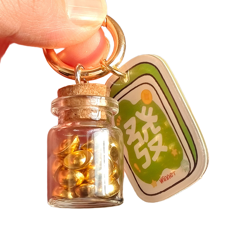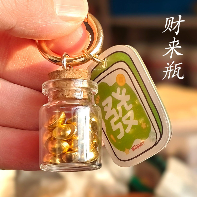 📚 马年来财瓶财来开财库钥匙扣挂件发财亚克力牌打麻将网红ins风挂