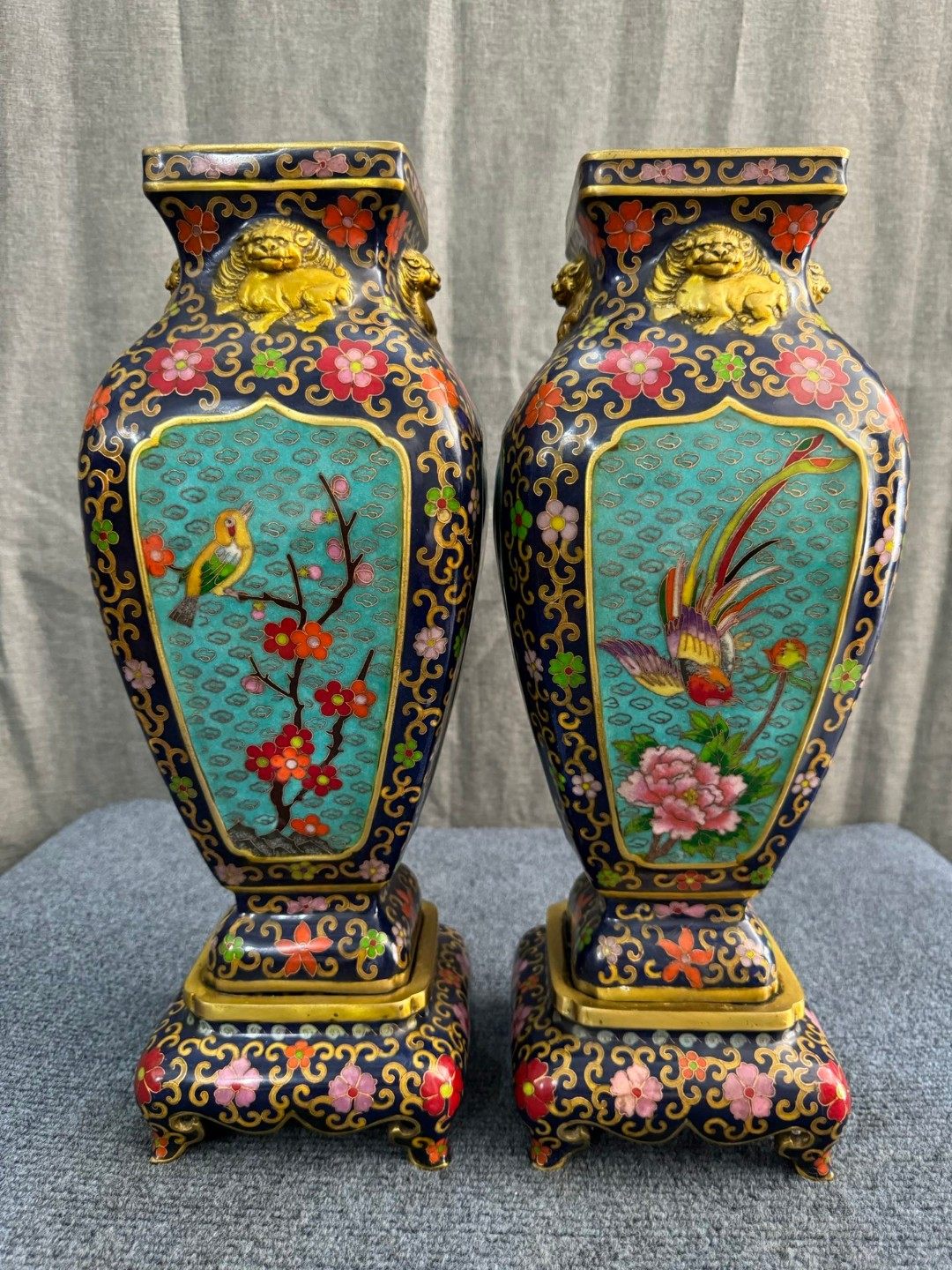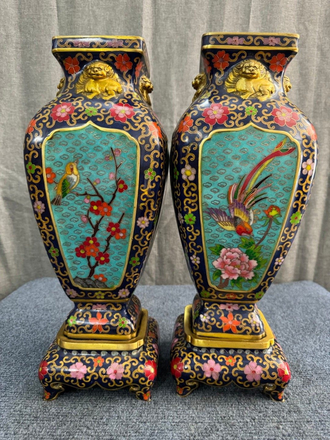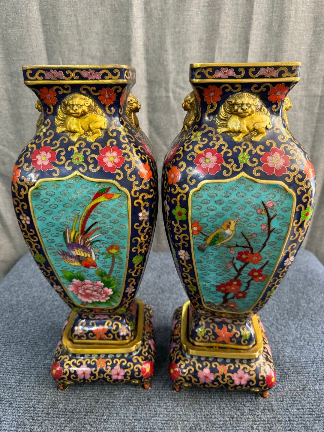 珐琅景泰蓝鸟语花香底座花瓶