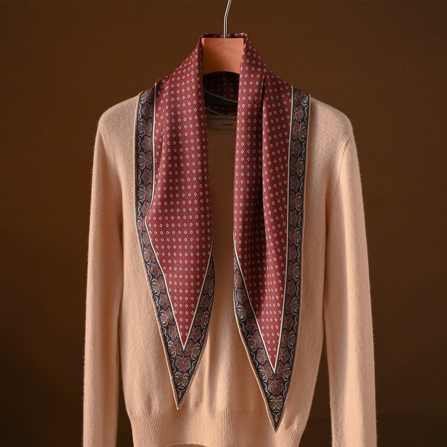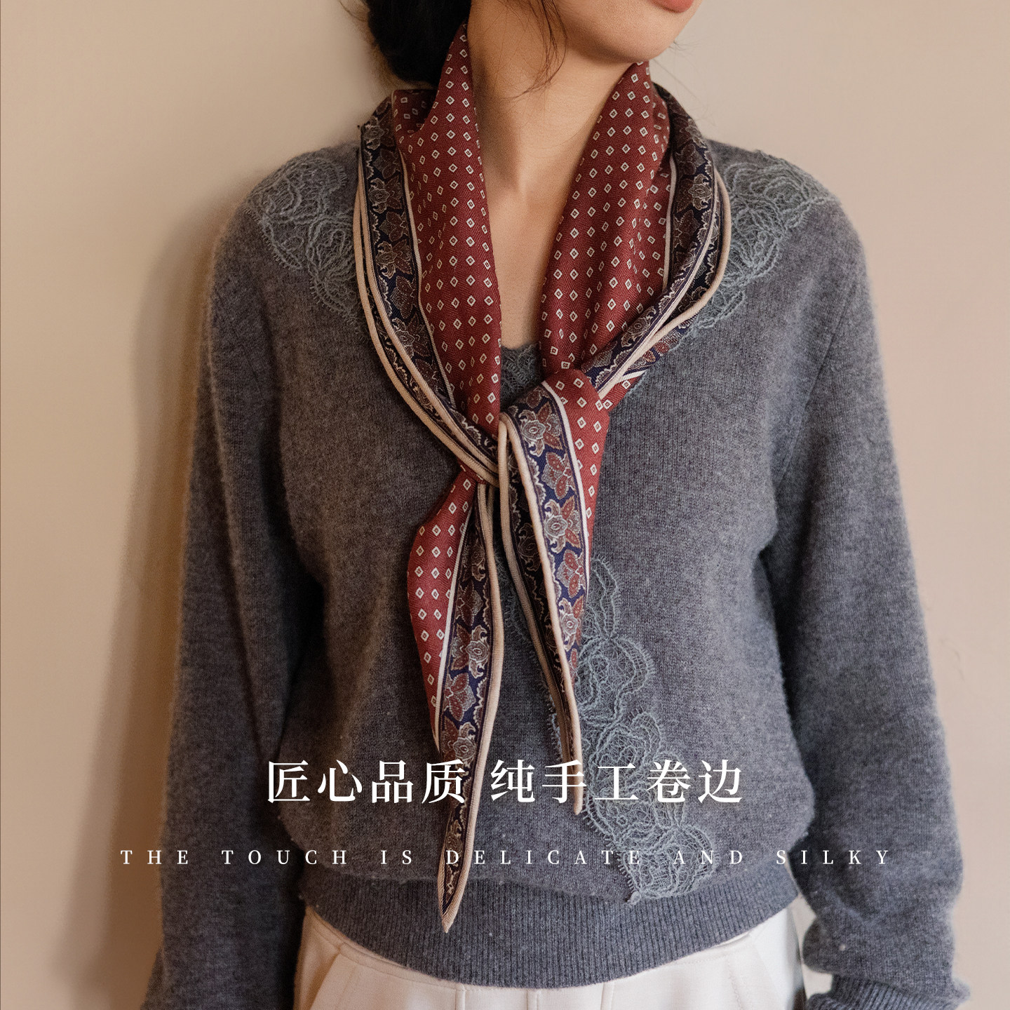 🎀材质介绍:丝巾采用优质红色真丝与羊绒交织,触感柔软细腻,宛如云朵般轻盈。搭配羊毛菱形图案,时尚又显气质。