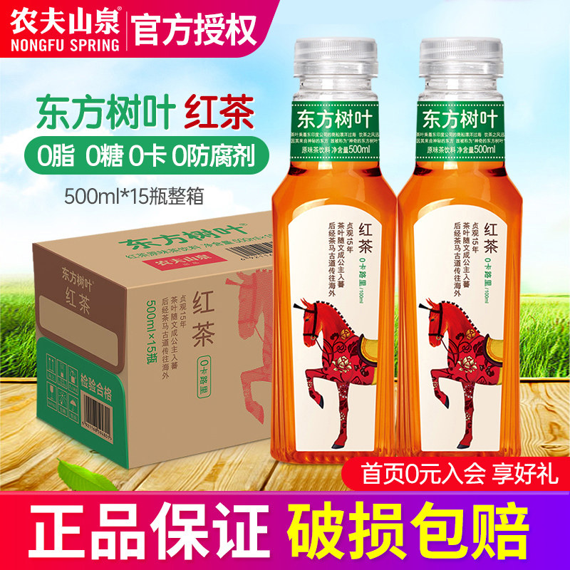 📚 农夫山泉东方树叶红茶500ml*15瓶整箱包邮 0卡无糖不含糖茶饮料