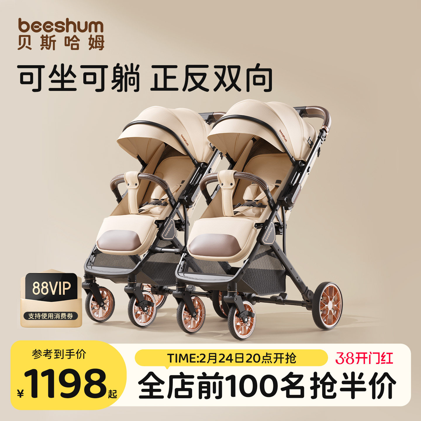 💥"被轻轻抚慰的宝贝时光,beeshum轻屿双胞胎婴儿推车,券后价仅2043!"
