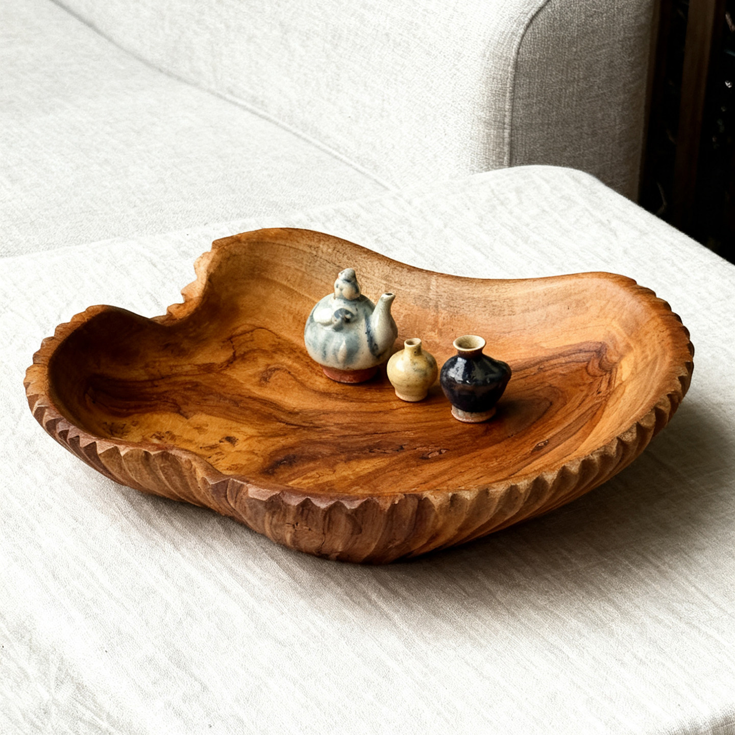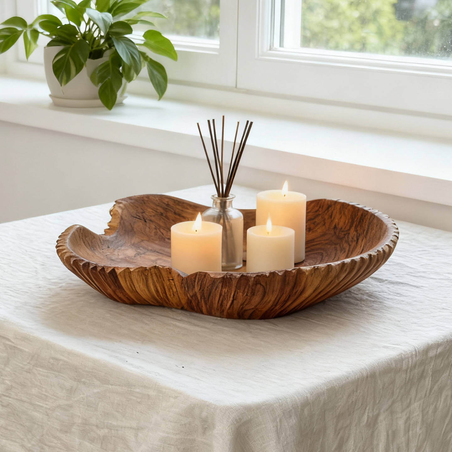 📚 最原木柚木果盘侘寂风蜡烛托盘实木水果盘木质装饰摆件高级感家用