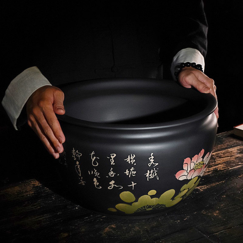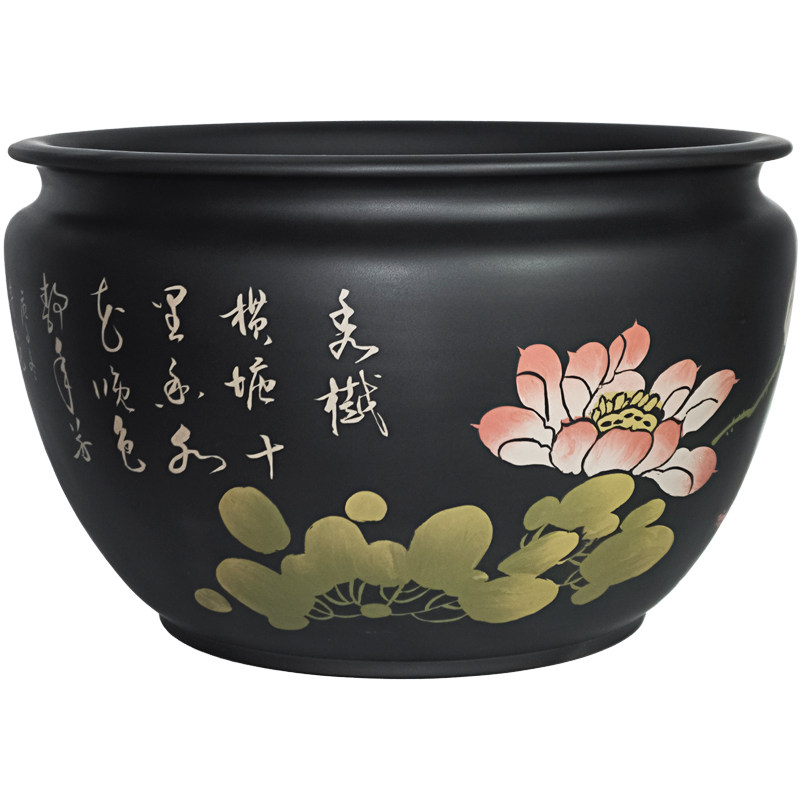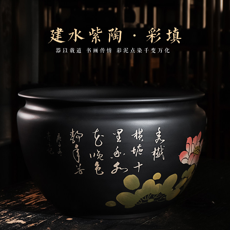 📚 建水紫陶鱼缸青云记彩填复古风水缸造景缸中式招财摆件办公室客厅