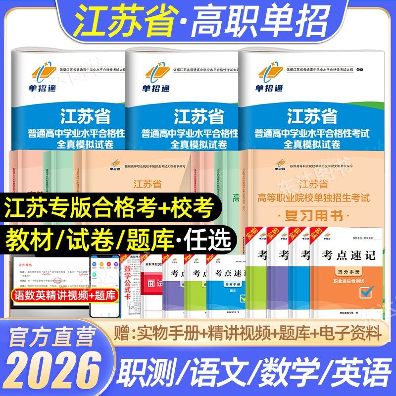 📚 单招通2026年江苏单招考试复习资料春季小高考校测江苏省普通高中合格考语数英外学业水平高职单招考试真题2025职业适应性测试对口
