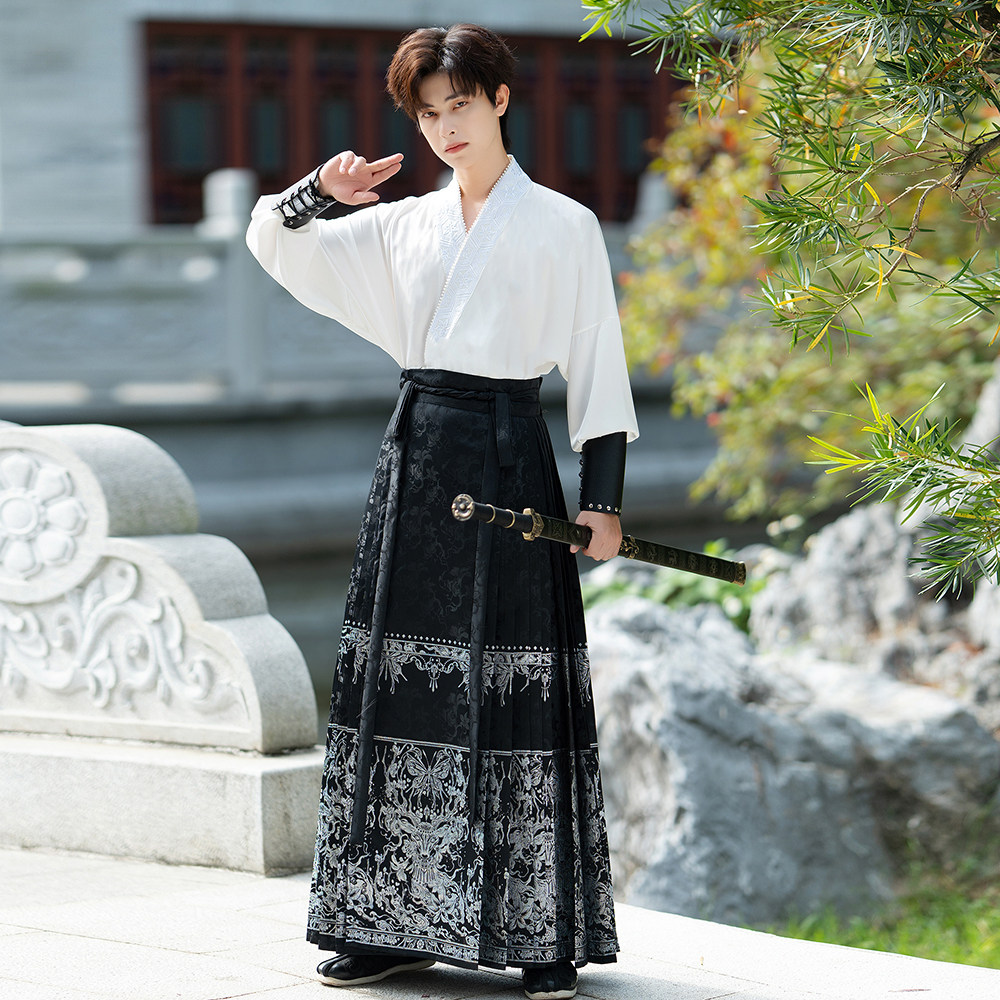 📚 明制成人汉服男款新中式中国风男士马面裙衬衫秋冬季日常情侣套装