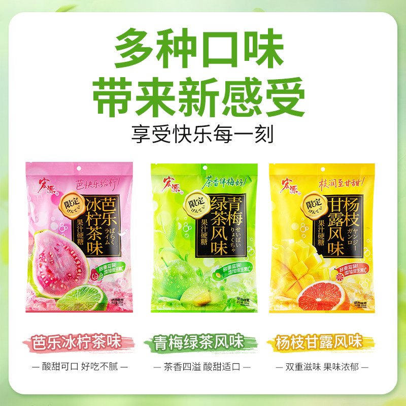 💥小红书风爆款!宏源果汁硬糖杨枝甘露风味酸甜水果糖🍉办公室必备,休闲招待超赞零食🎉