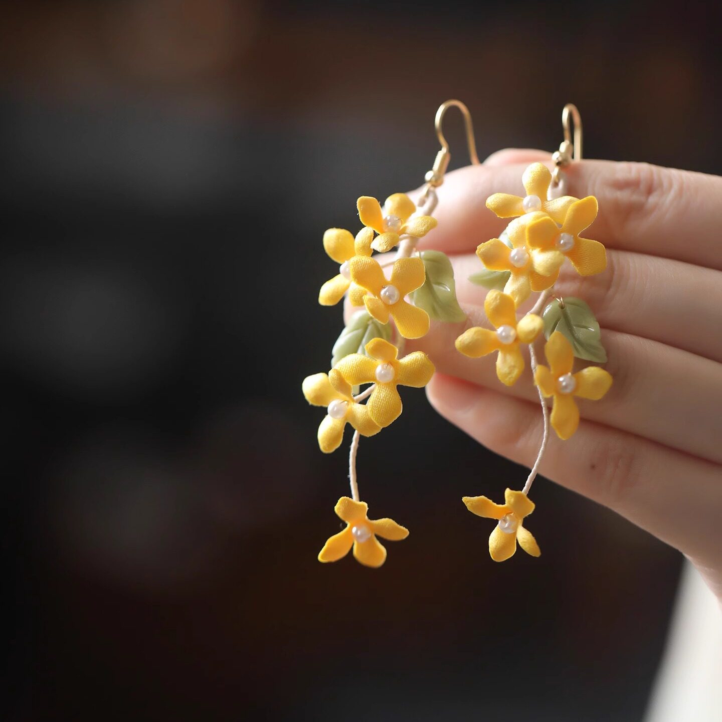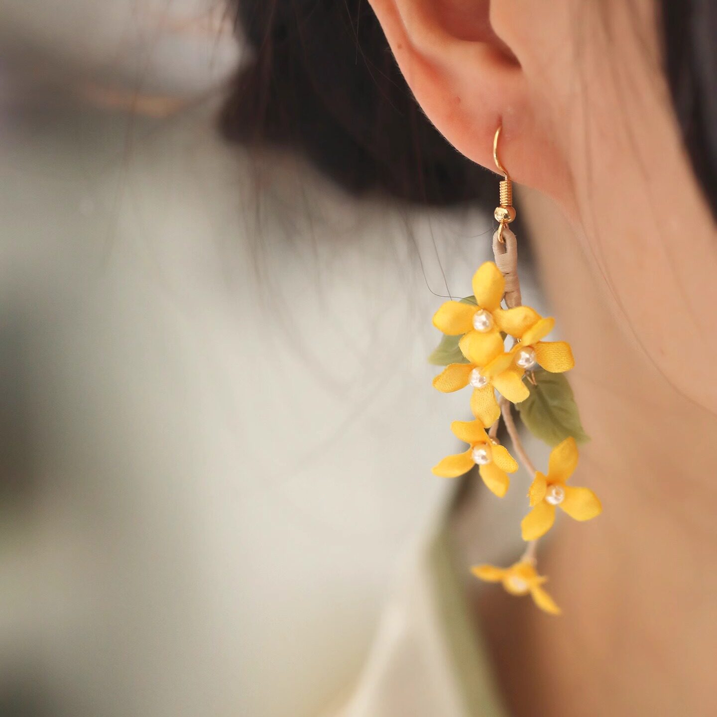 📚 芊墨夏禾小清新长款绿叶桂花花卉耳环超仙气质旗袍耳坠复古配饰女