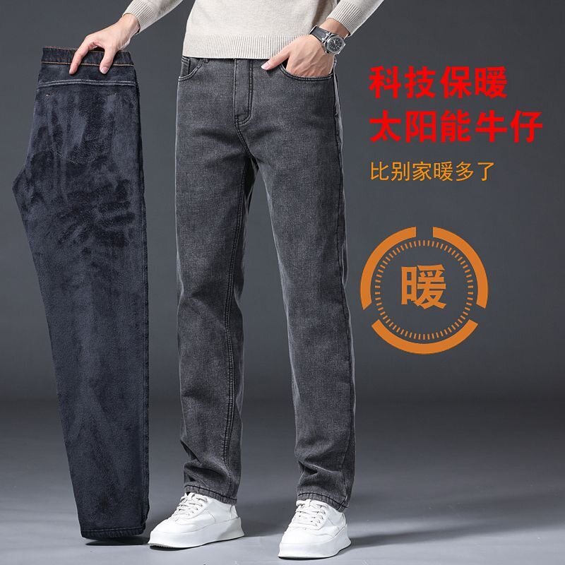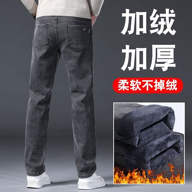 📚 加绒加厚秋冬男士宽松牛仔裤长裤高弹力直筒修身休闲保暖冬季裤子