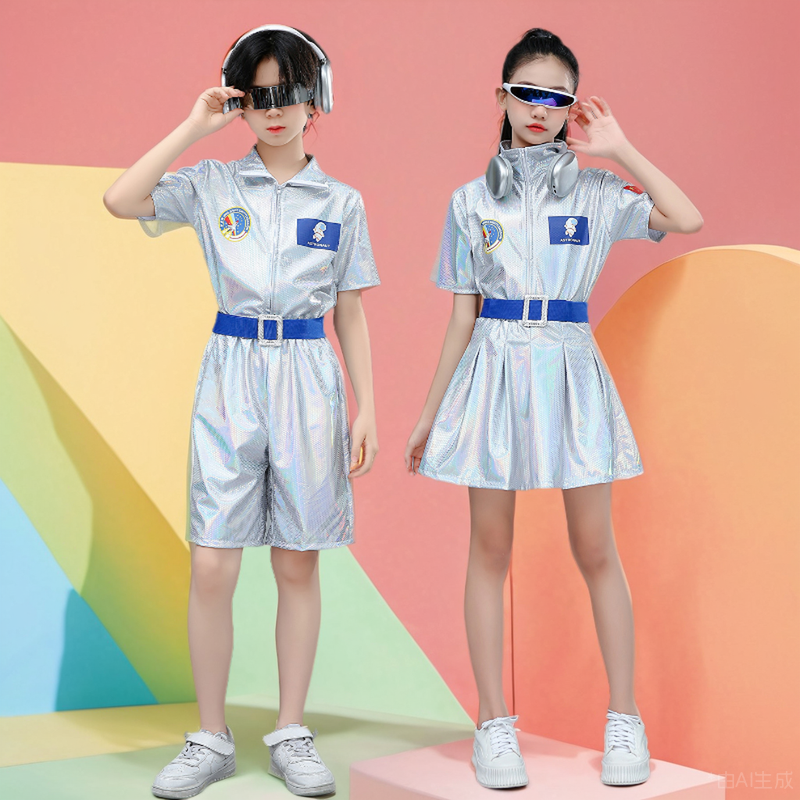 📚 未来科技感服装儿童宇航员太空服AI逐梦舞蹈演出服中小学生运动会