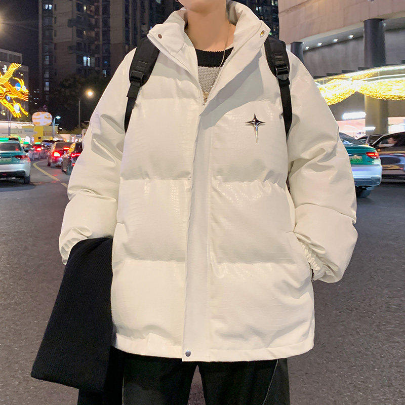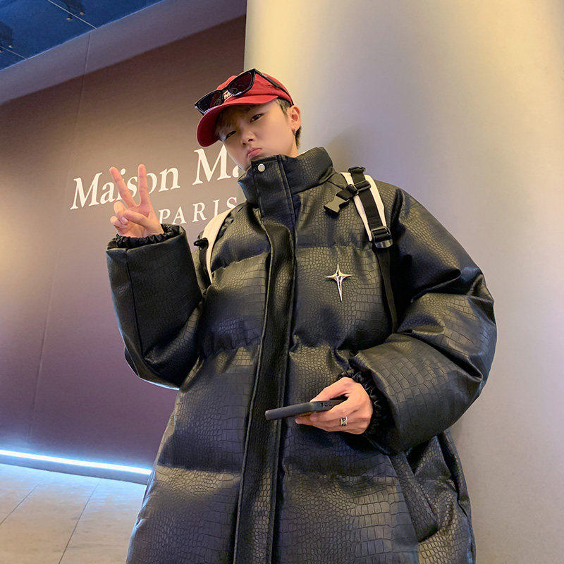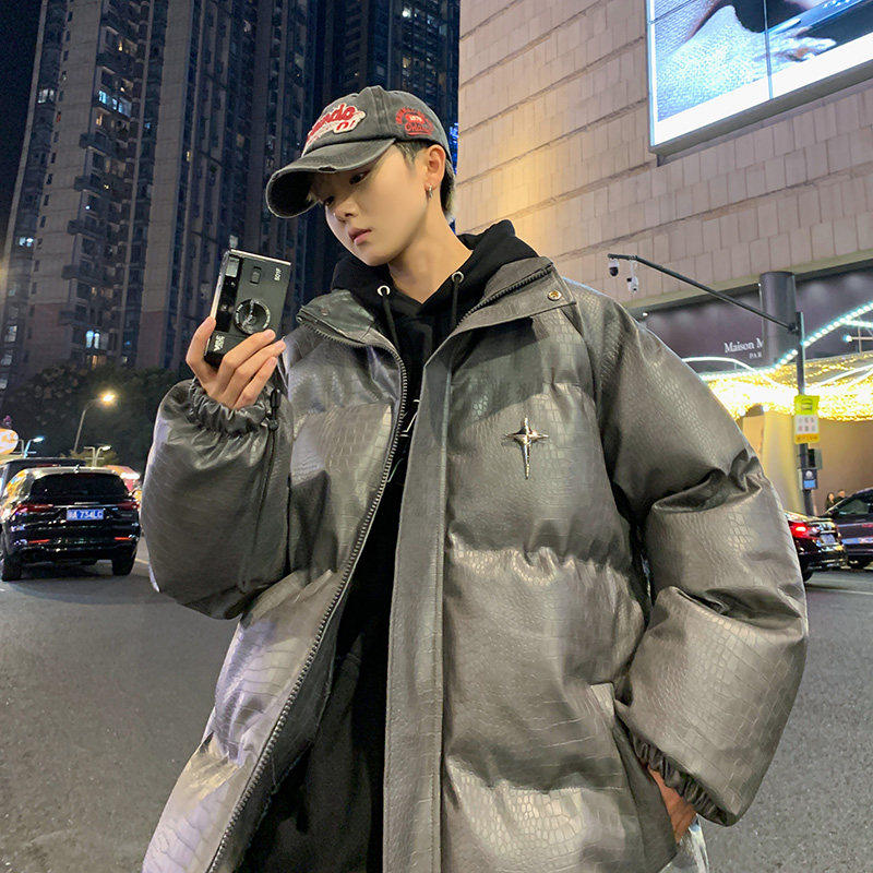 📚 鳄鱼纹PU皮棉衣外套男冬季加厚美式潮牌字母钢印宽松大码棉袄棉服