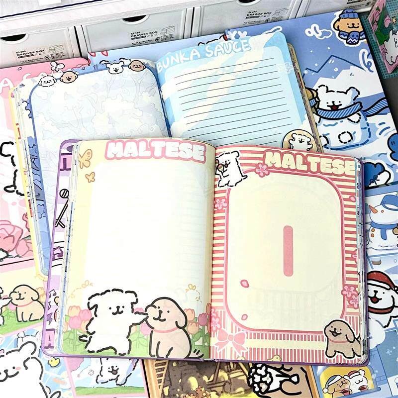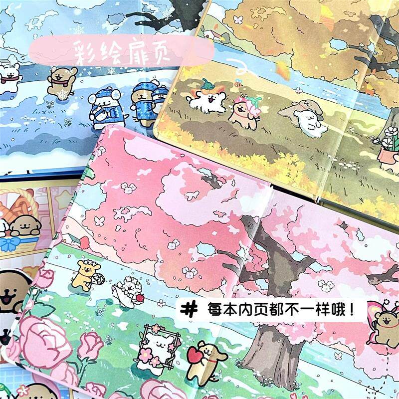 📚 现货线条小狗学生可爱高颜值手账本A5硬壳本全彩绘内页笔记本