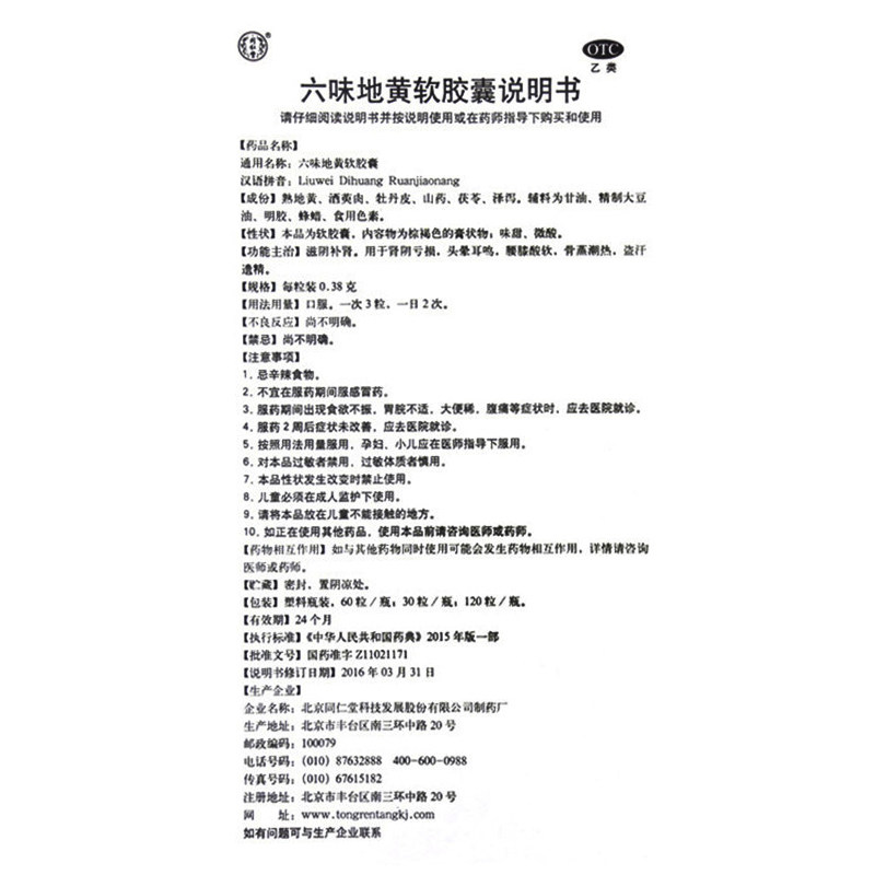 📚 同仁堂六味地黄软胶囊包装头晕耳鸣旗舰店滋阴补肾盗汗遗精肾虚