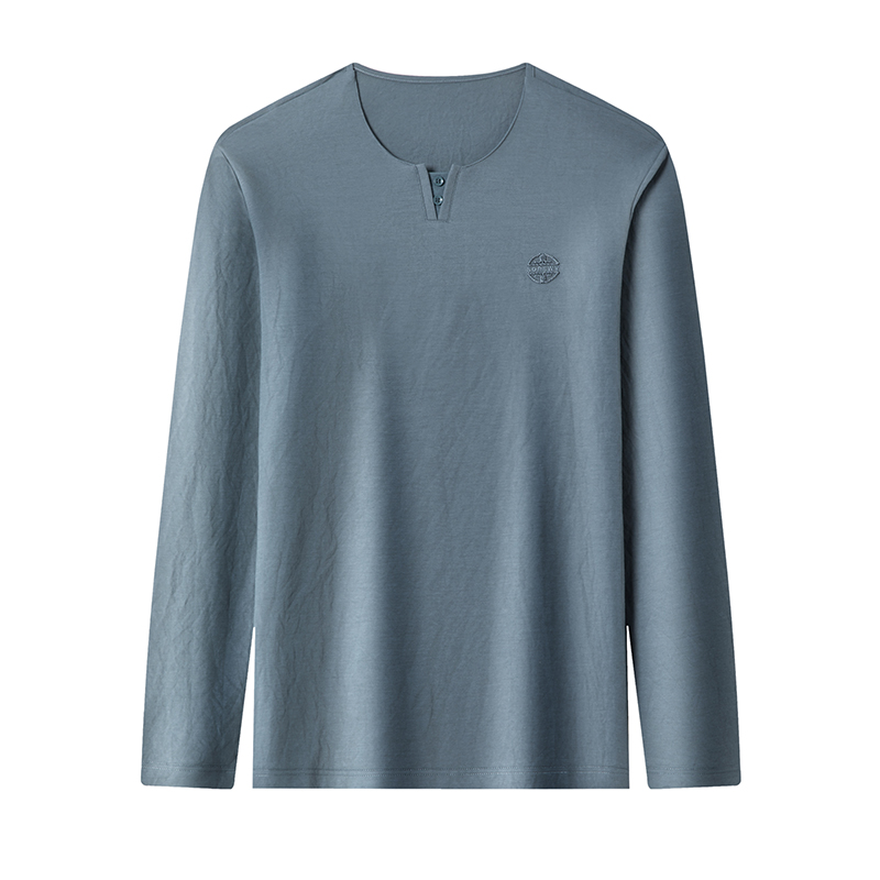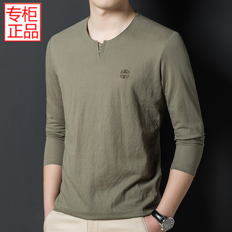 📚 中国风仿棉麻长袖t恤男土简约上衣透气丝光棉爸爸装体桖秋季薄款