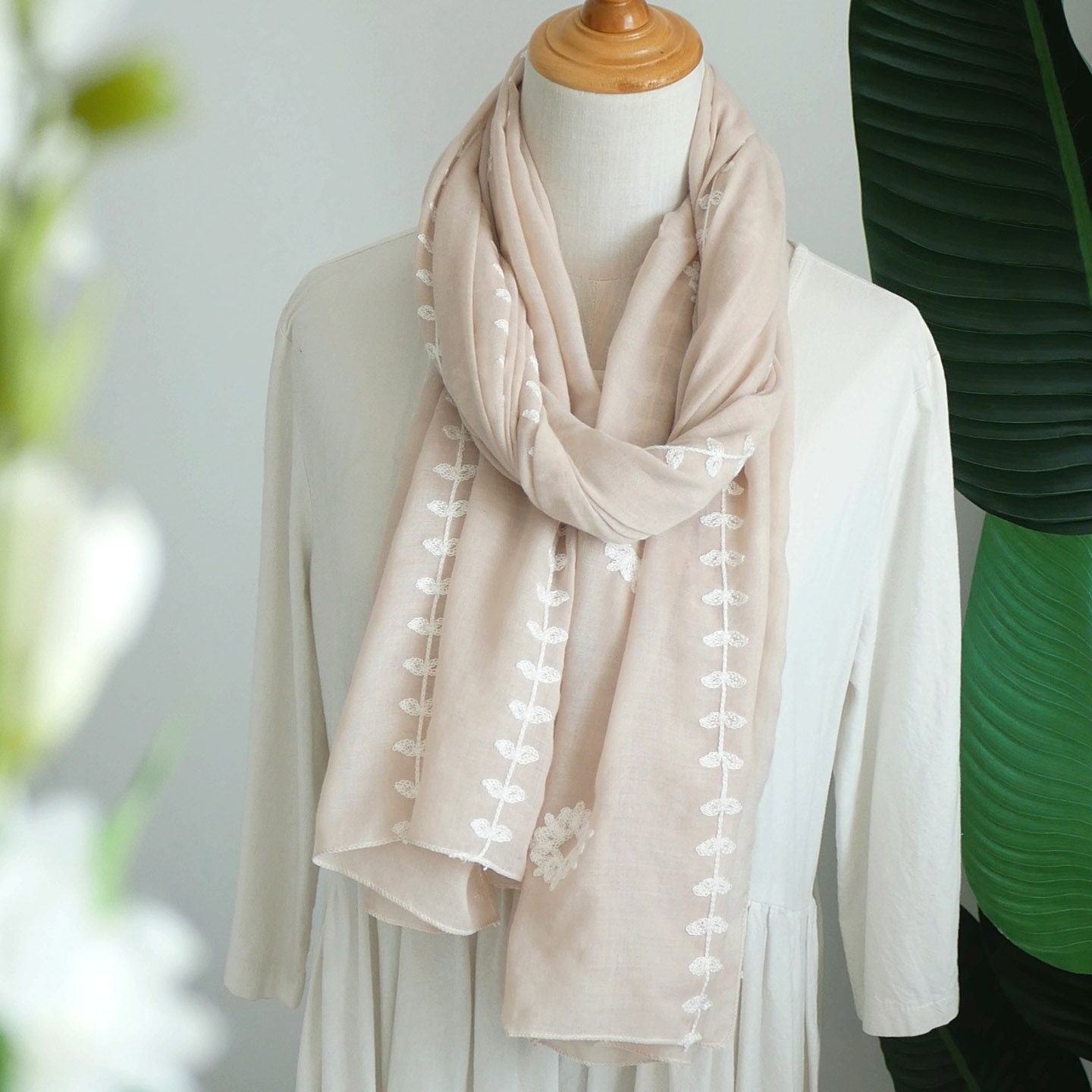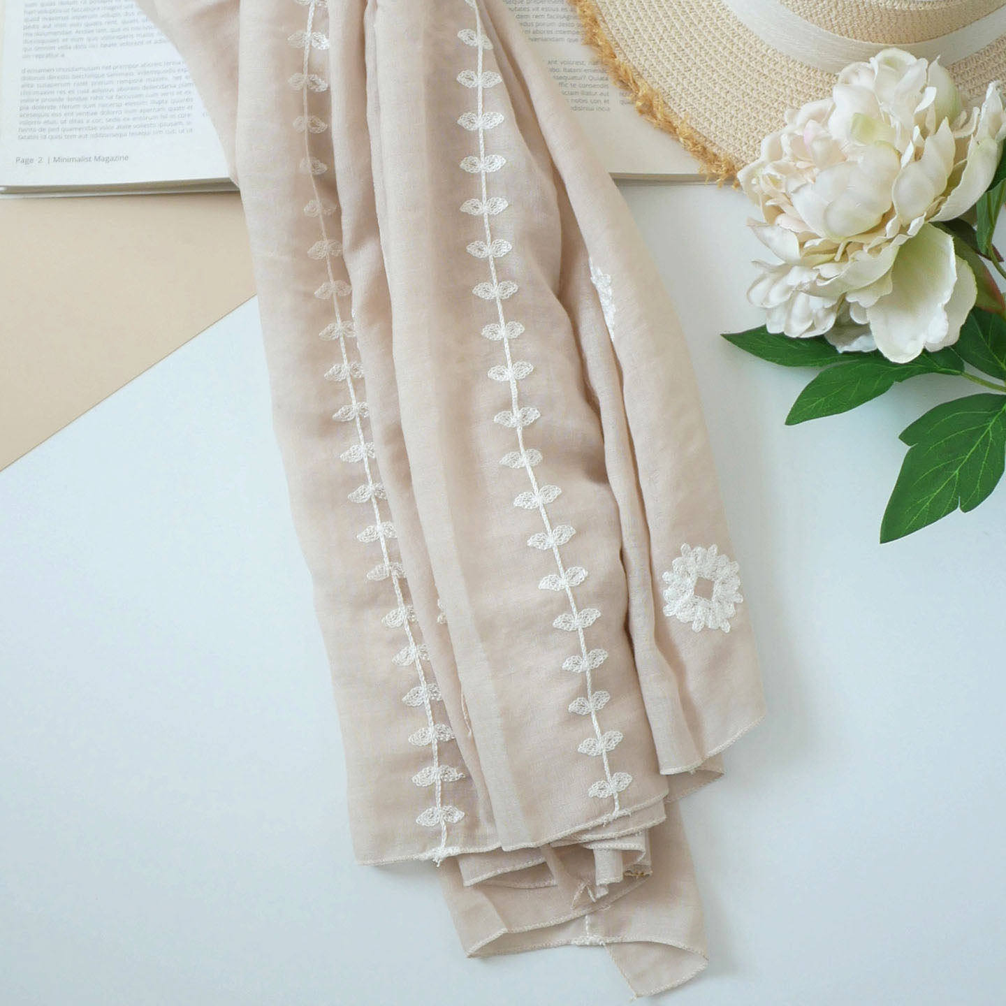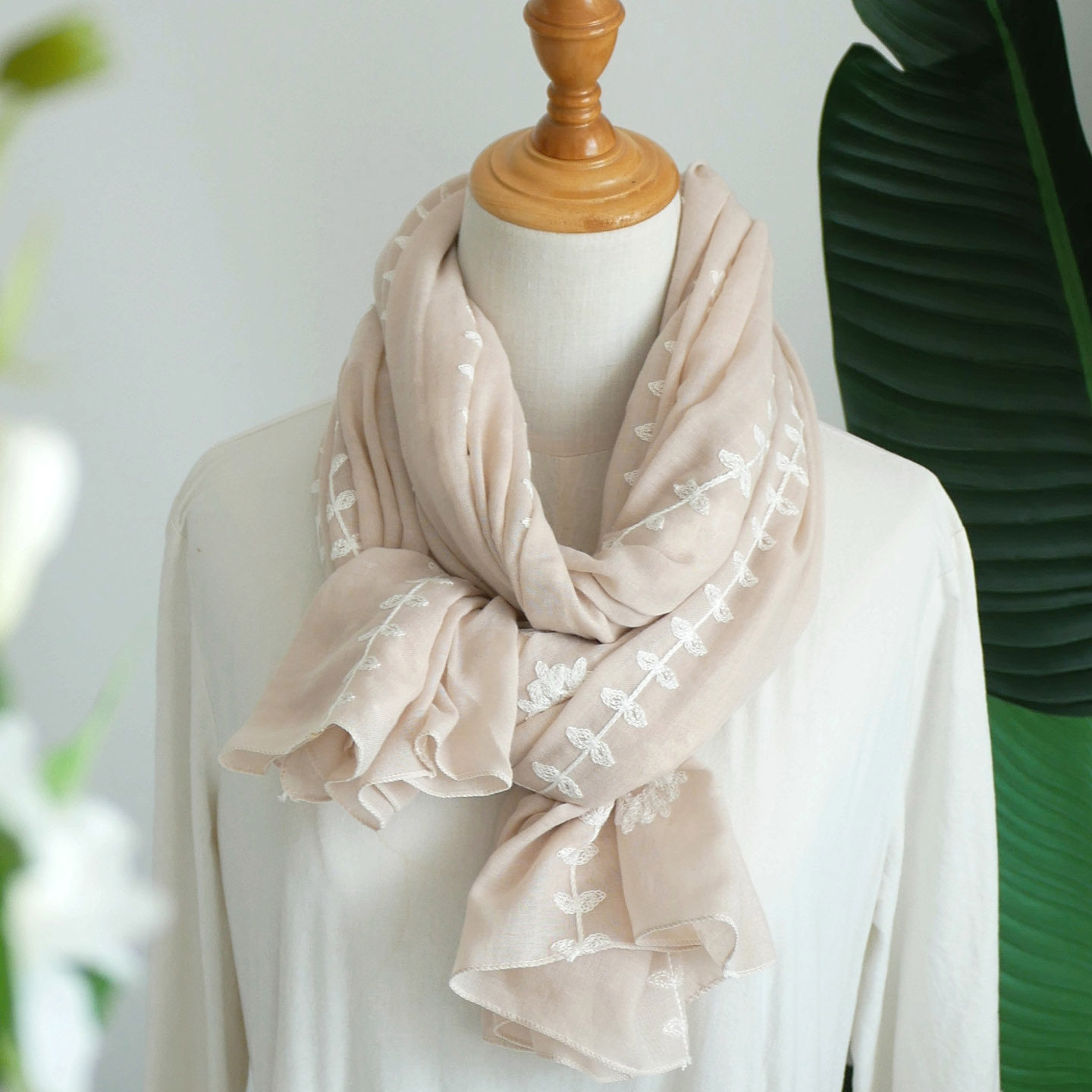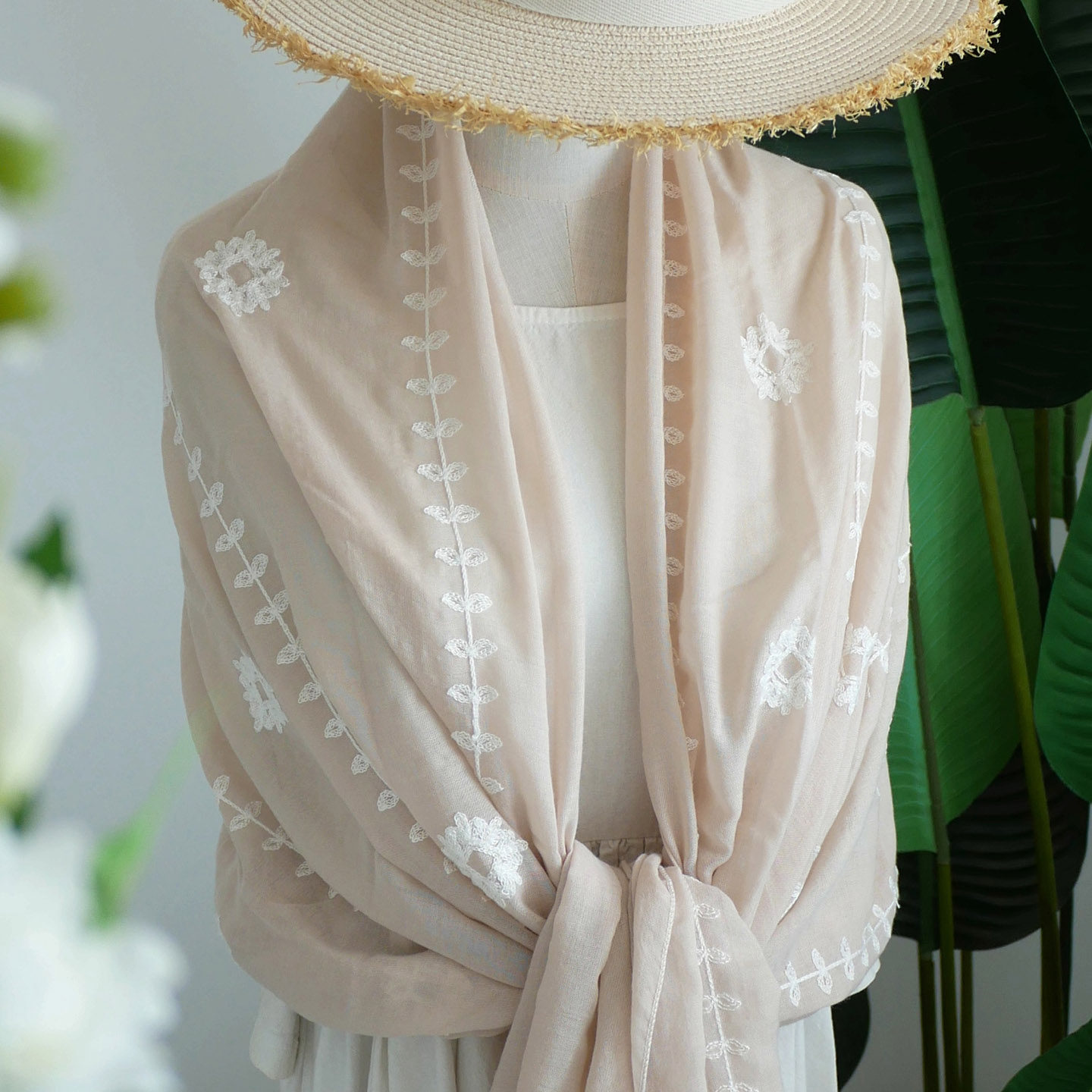 📚 风的枝条 温柔刺绣棉麻围巾 遮阳披肩丝巾沙漠盐湖阿布扎比头巾
