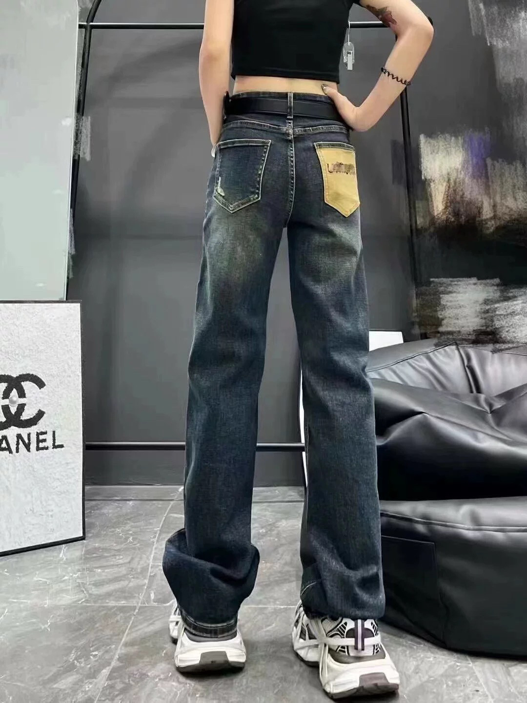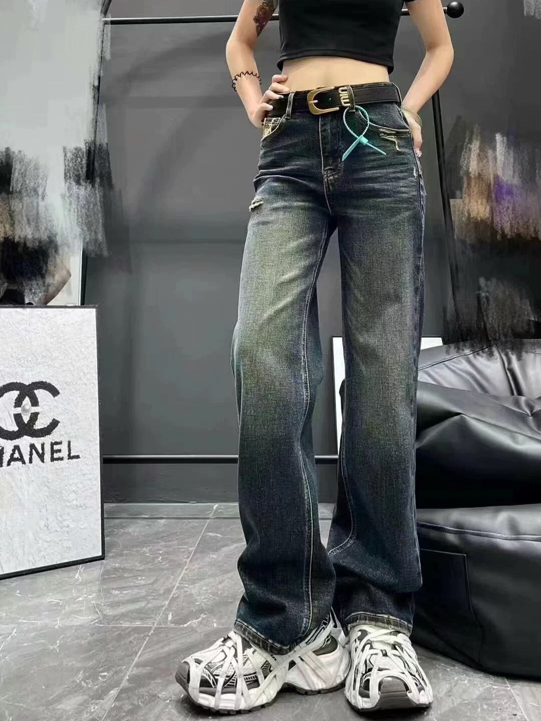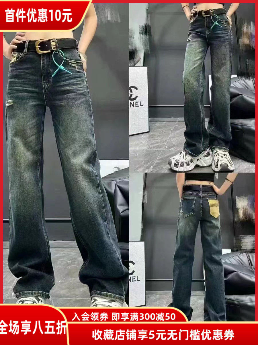📚 宽松古米做旧美式复古高腰显瘦百搭小众设计辣妹窄版直筒牛仔裤粗