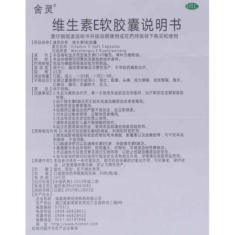 📚 舍灵维生素E软胶囊天然型60粒用于心脑血管疾病及习惯性流产