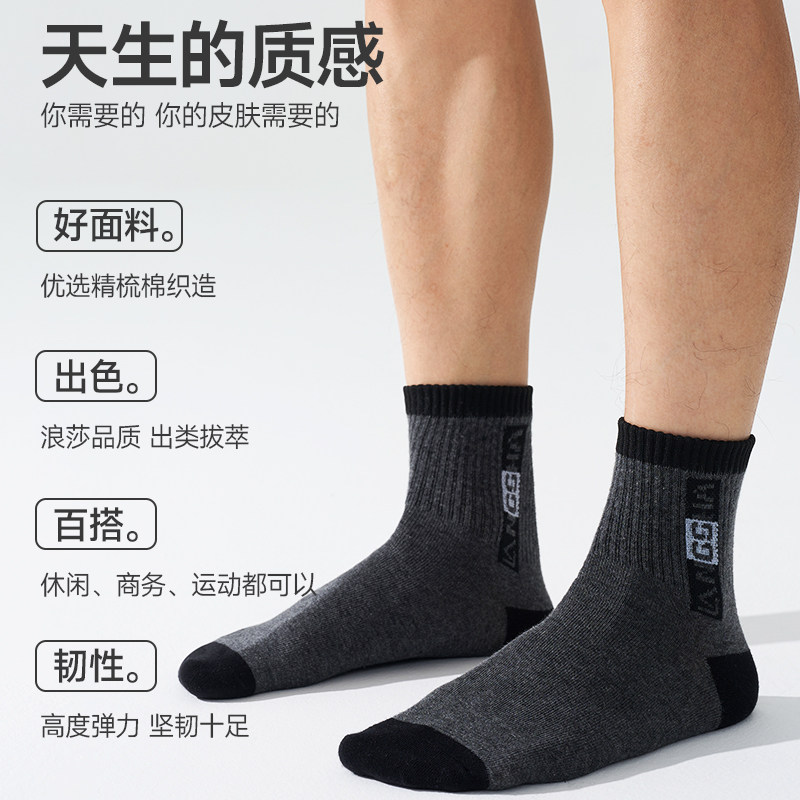 📚 浪莎袜子男7A抗菌防臭中筒袜春秋厚款男袜秋冬青少年男士运动短袜