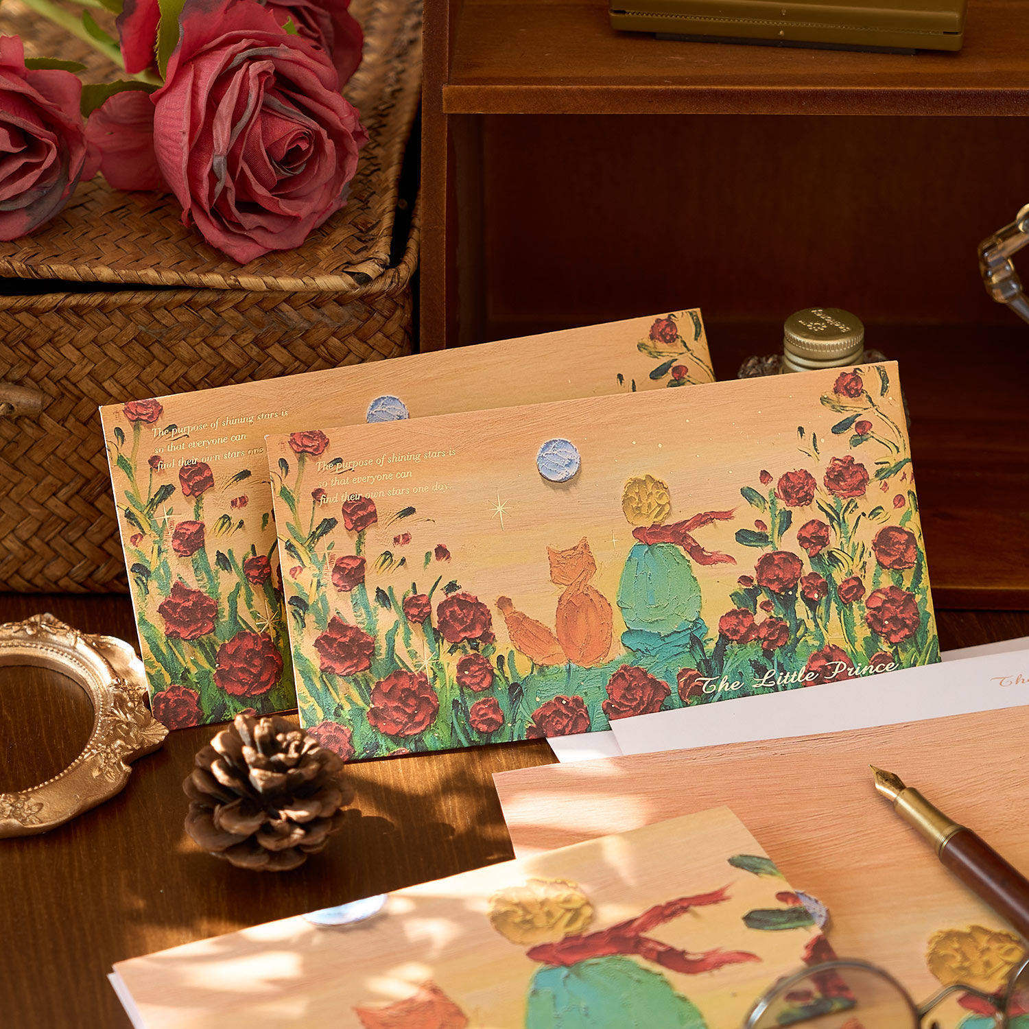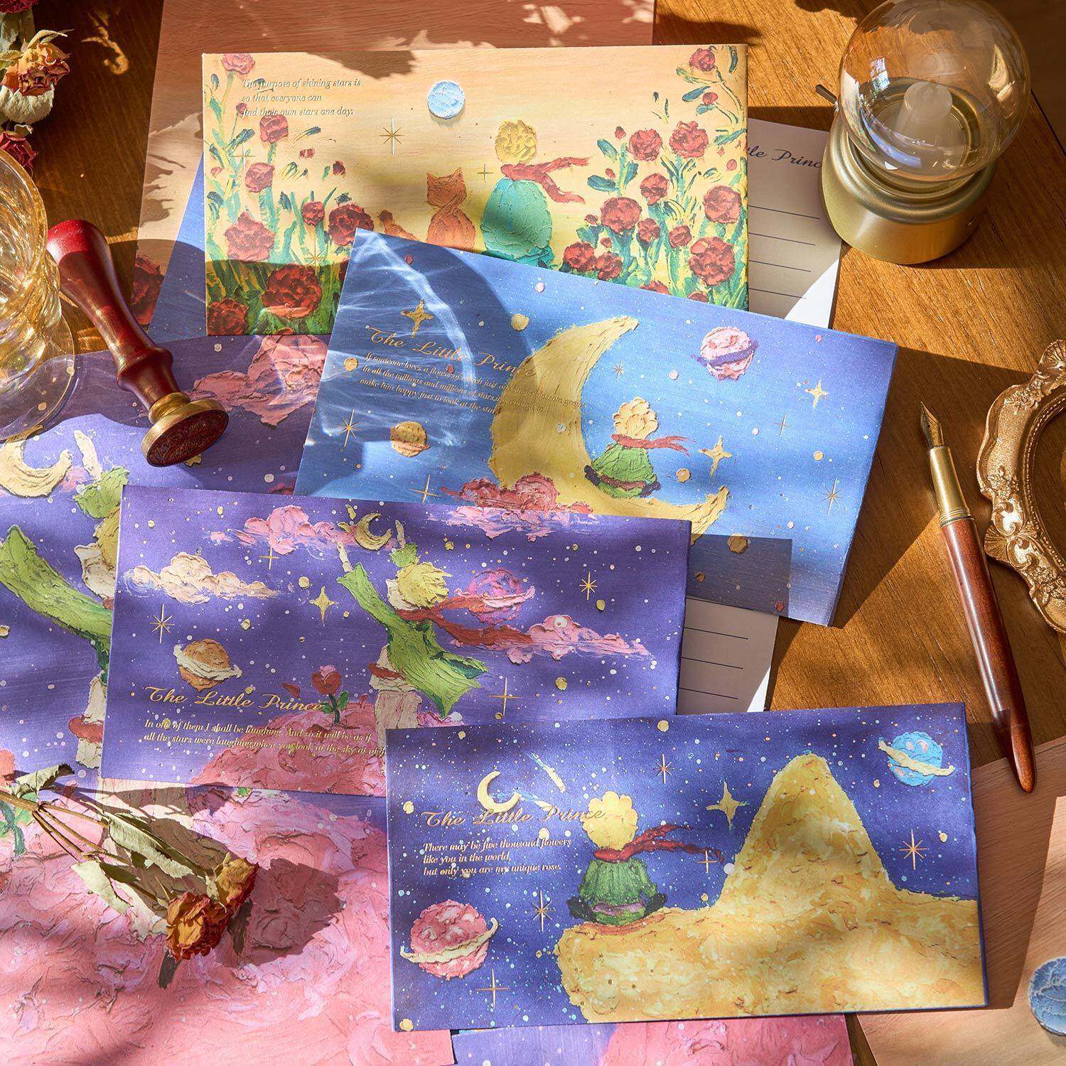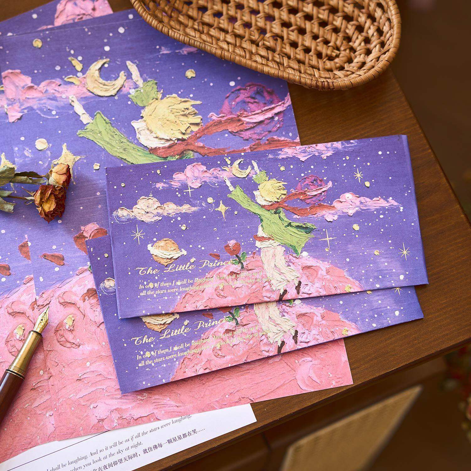 📚 复古时光星球烫金信纸信封套装 ins高颜值小王子玫瑰情书留言信笺