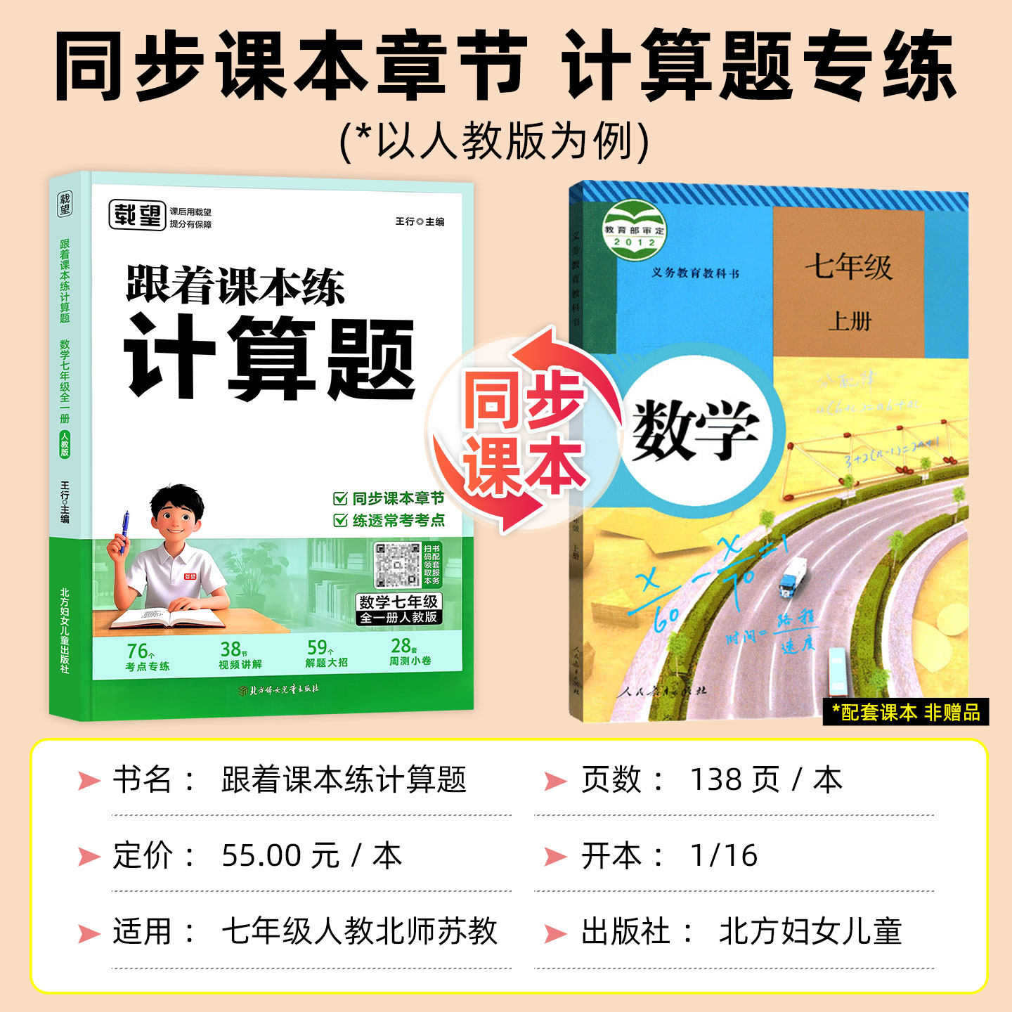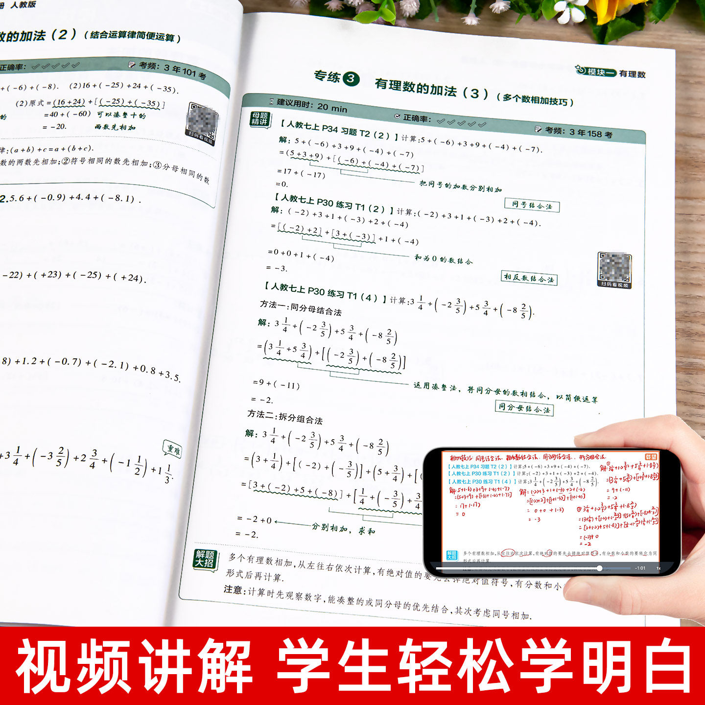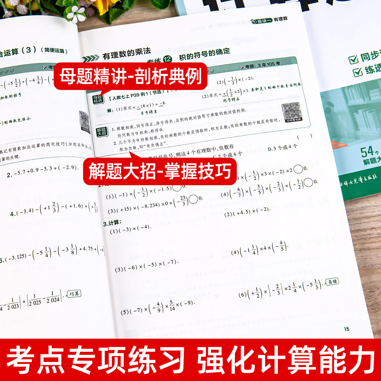 📚 七年级数学计算题专项训练上册下册人教版北师版苏教版初一计算练习数学同步练习册有理数一元一次方程实数二元一次方程组计算训练