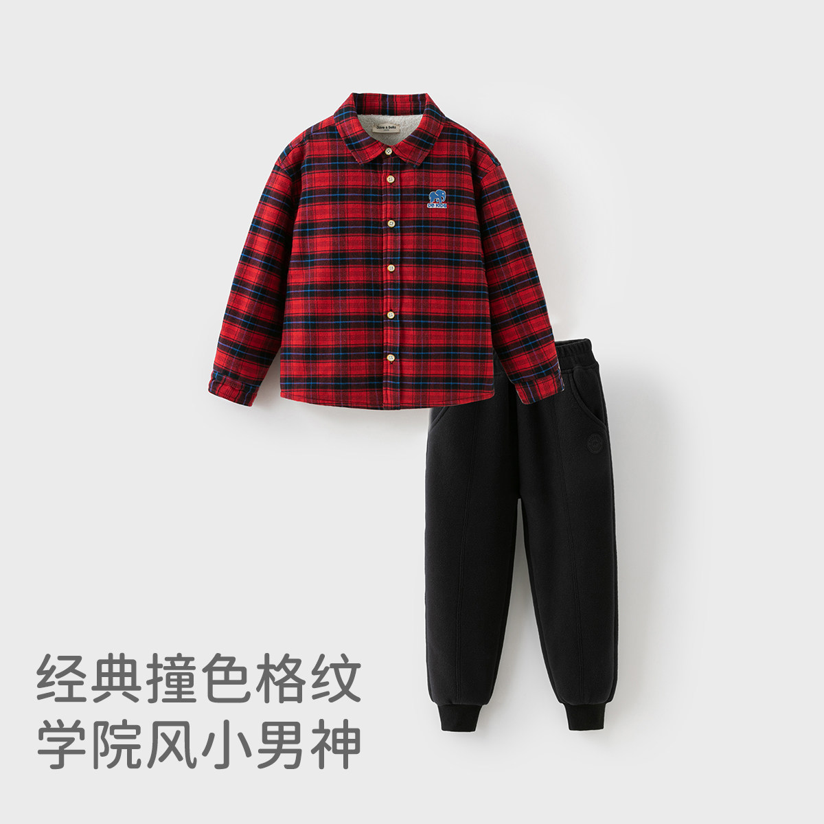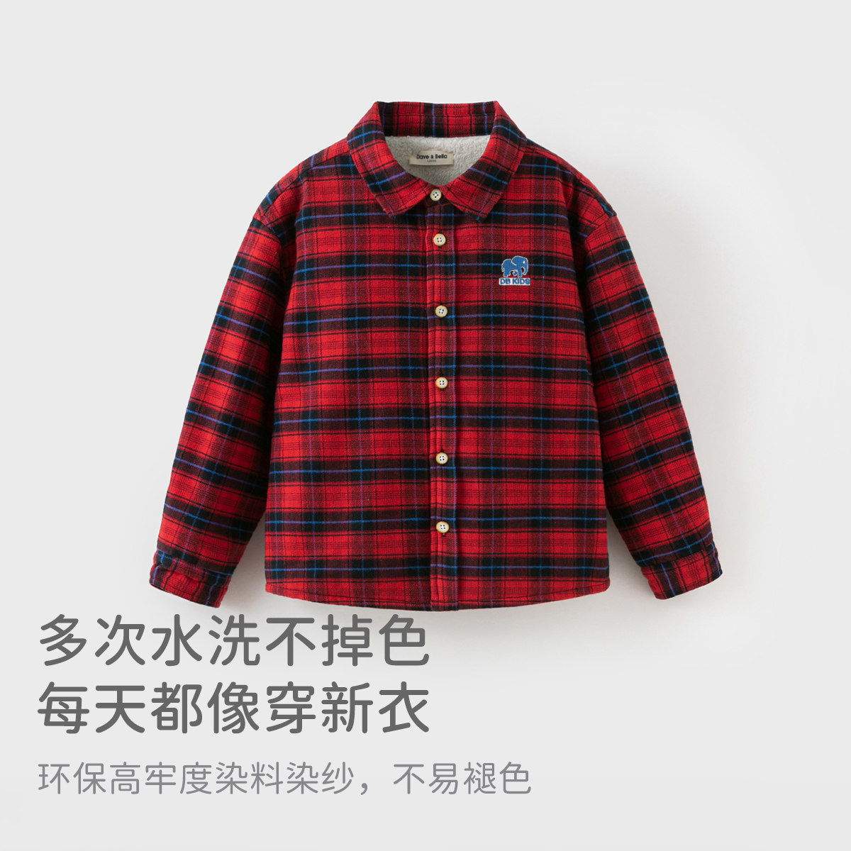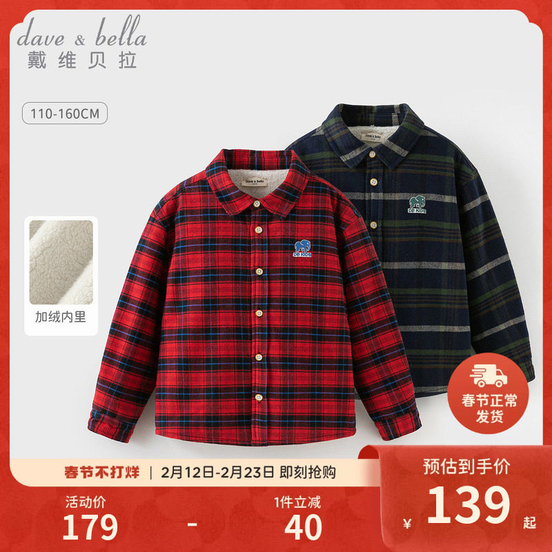 📚 戴维贝拉儿童衬衫男童2026格子加绒衬衣中大童新款冬装上衣童装