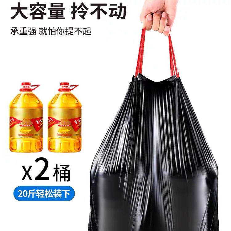 📚 加厚垃圾袋子垃圾袋抽绳式厨房宿舍黑色手提式自动收口塑料袋家用