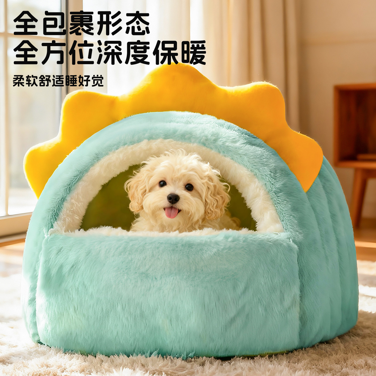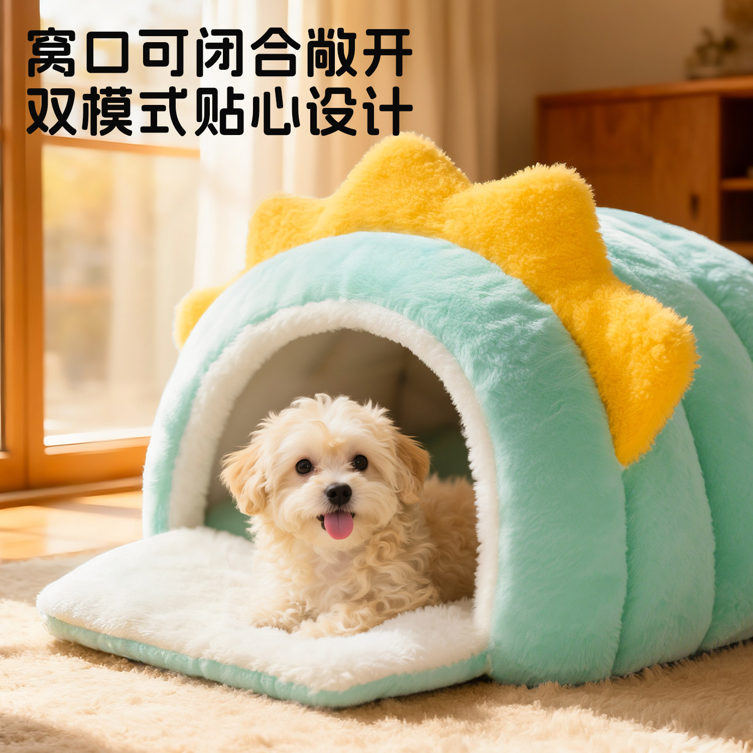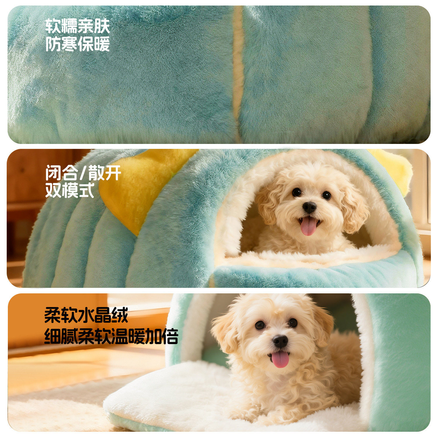 📚 狗窝冬季保暖半封闭式洞穴式可拆卸狗狗秋冬睡窝中小型犬狗房猫窝