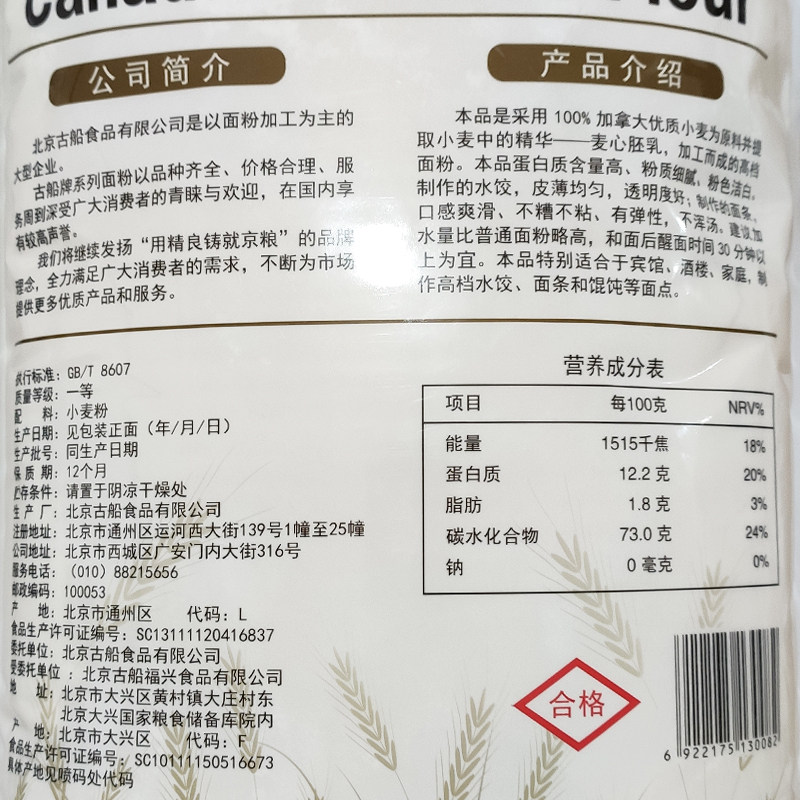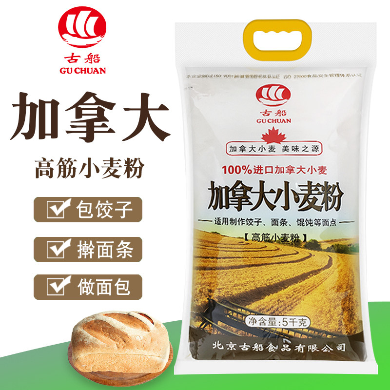 📚 古船面粉加拿大小麦粉5kg麦芯粉家用高筋粉烘焙原料面包粉饺子粉