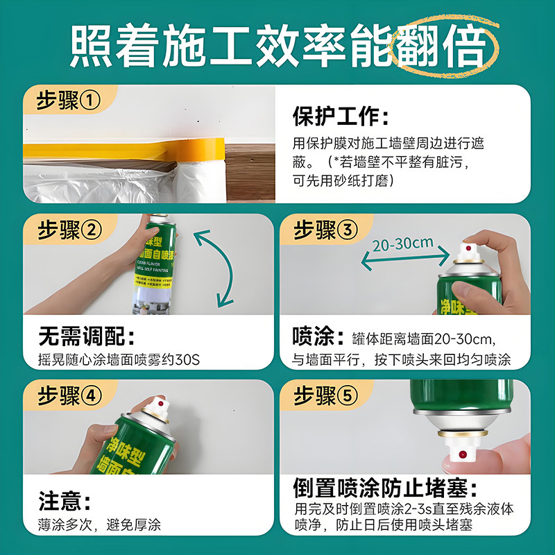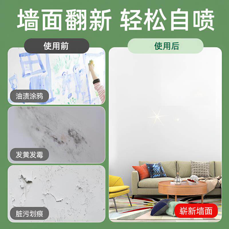 📚 墙面自喷漆升级新配方乳胶漆白墙面翻新去污修复强覆盖环保自刷漆