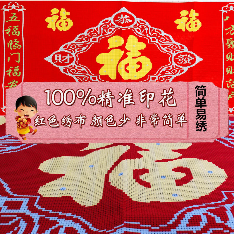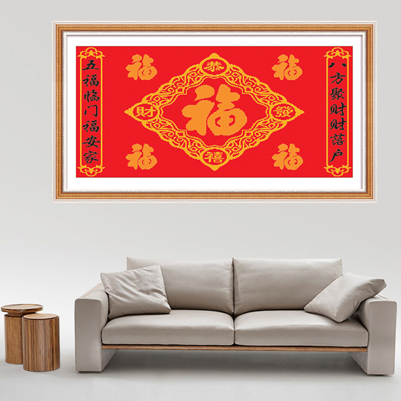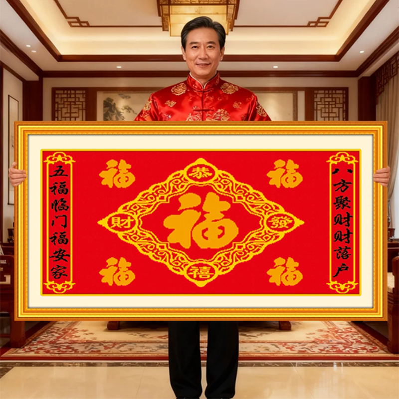 📚 五福临门2026新款自己手工刺绣十字绣线绣客厅玄关中堂百福图福字