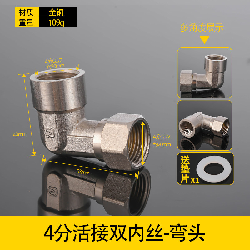 📚 6分铜活接三通内外丝直接 DN20弯头双内丝带活接头变径水管配件
